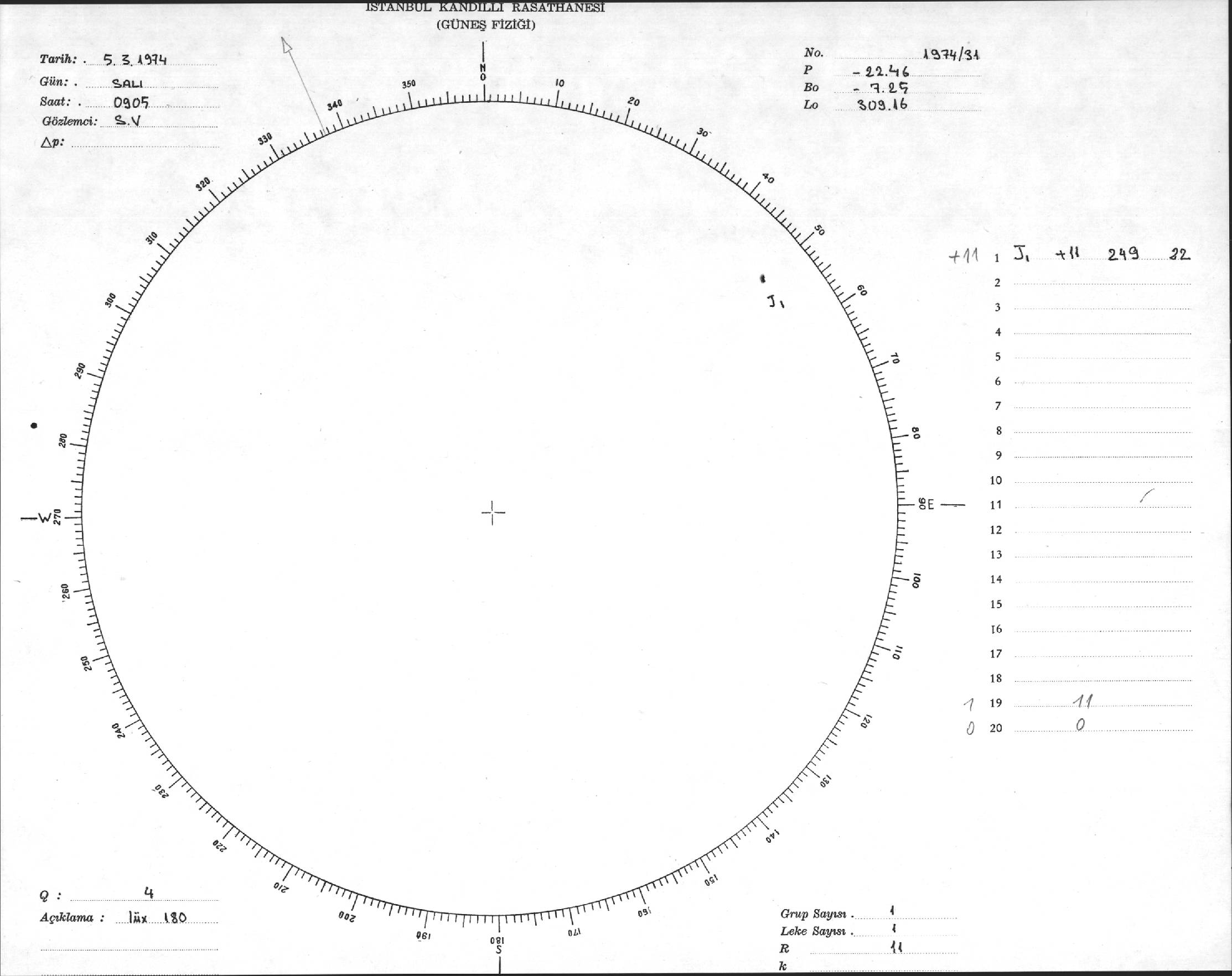 Güneş Lekesi Çizimi - 05.03.1974