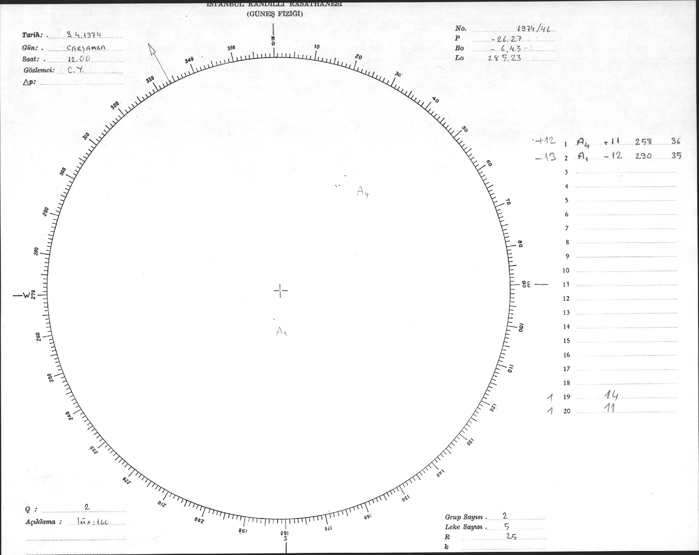 Güneş Lekesi Çizimi - 03.04.1974