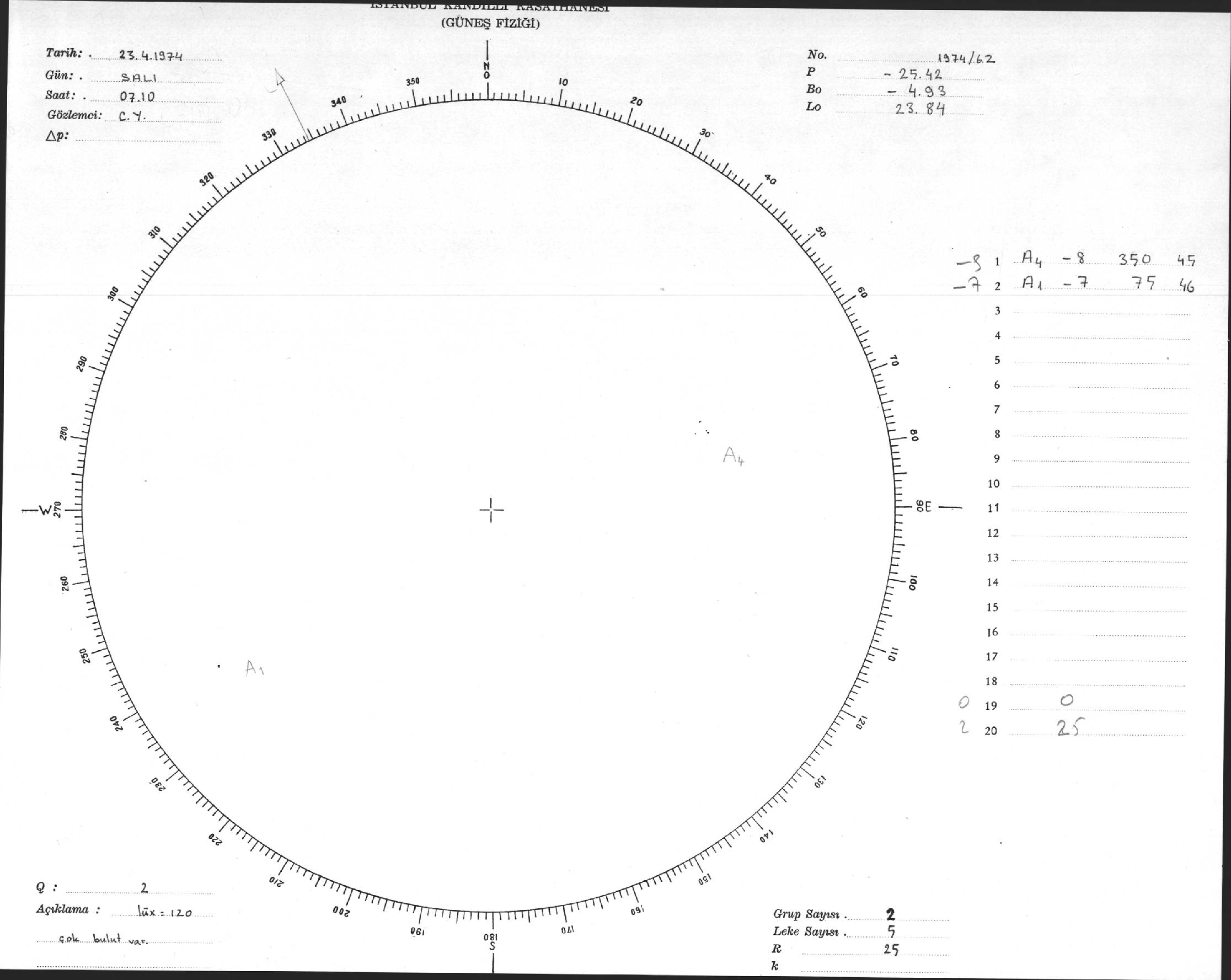 Güneş Lekesi Çizimi - 23.04.1974
