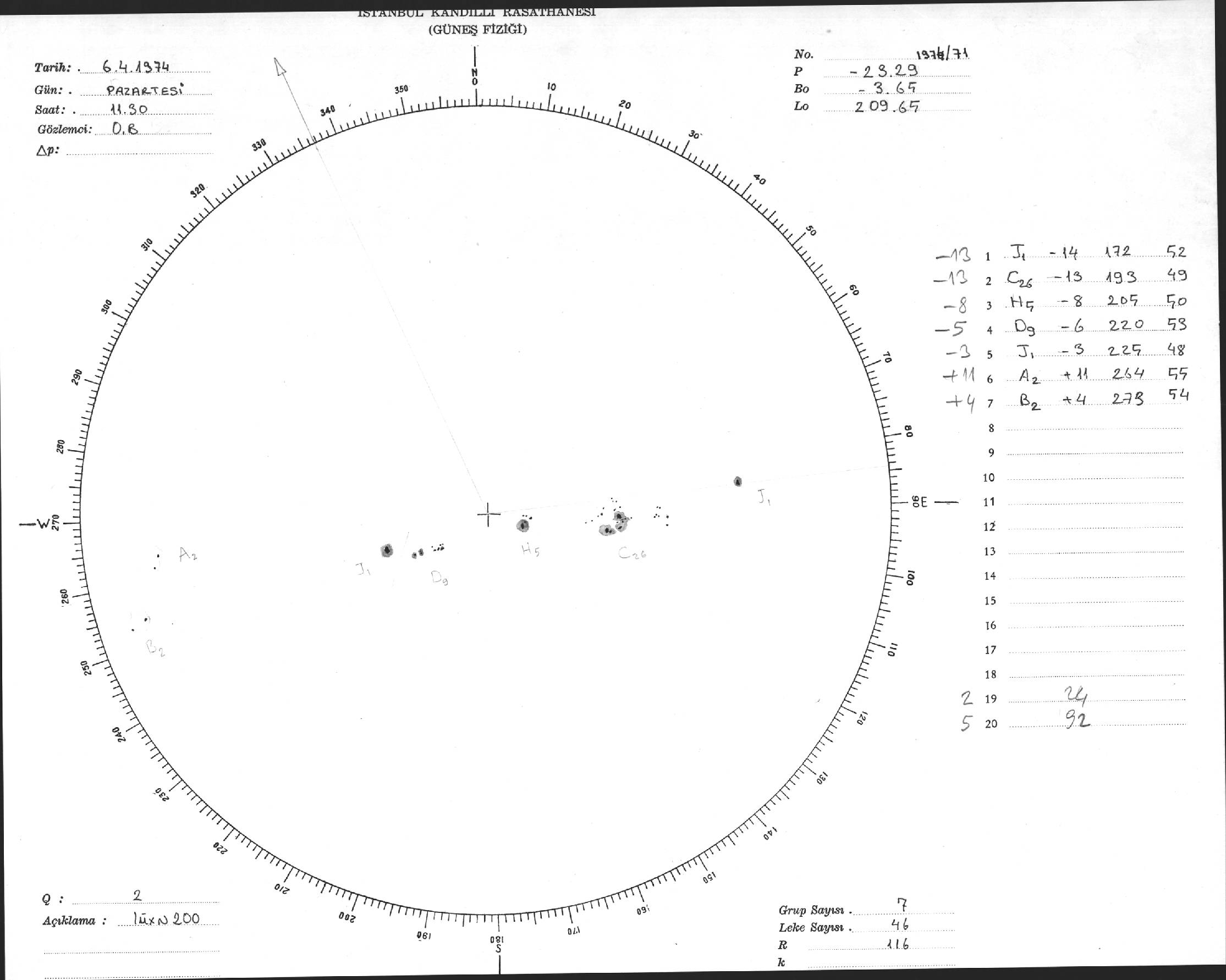 Güneş Lekesi Çizimi - 06.05.1974