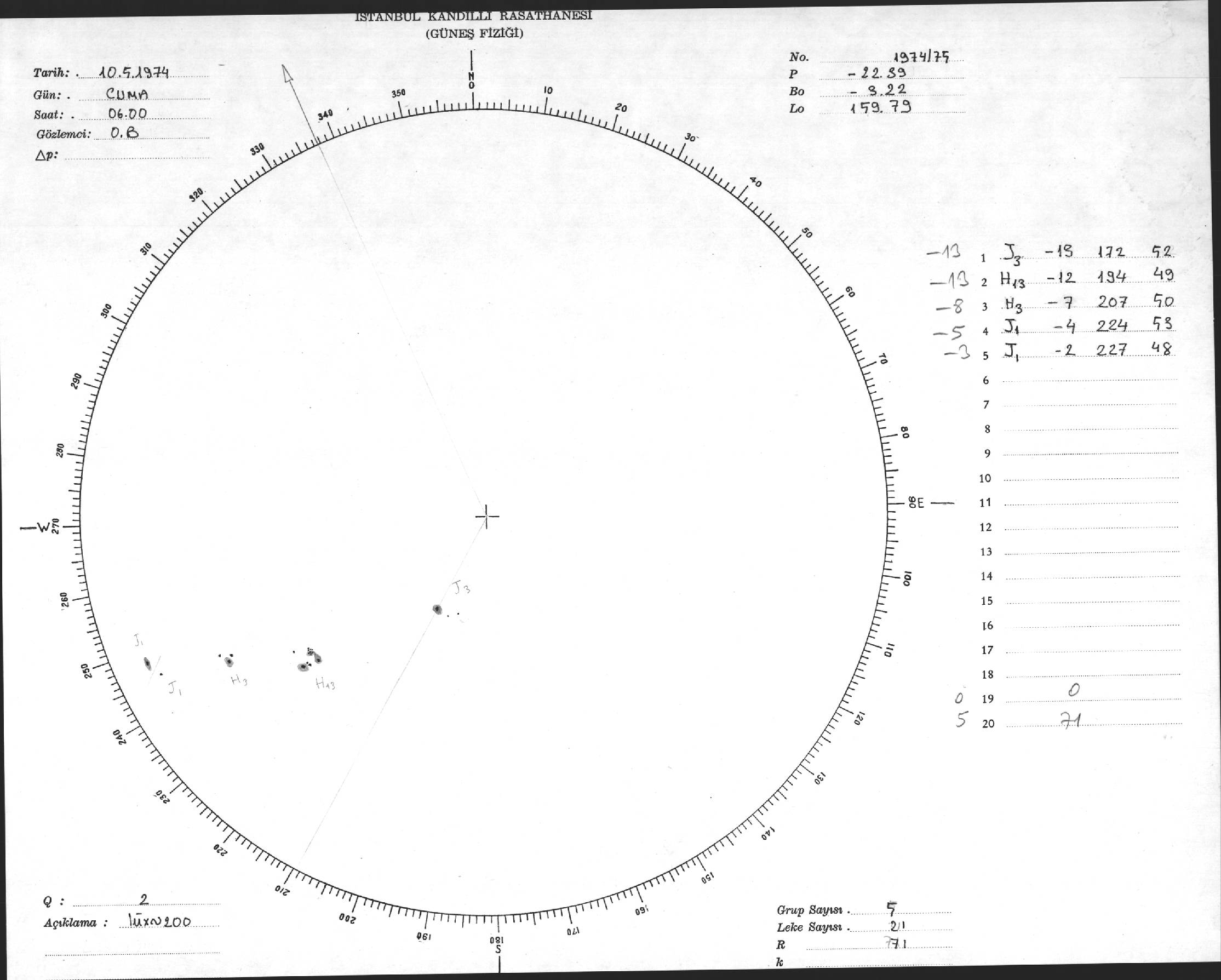 Güneş Lekesi Çizimi - 10.05.1974