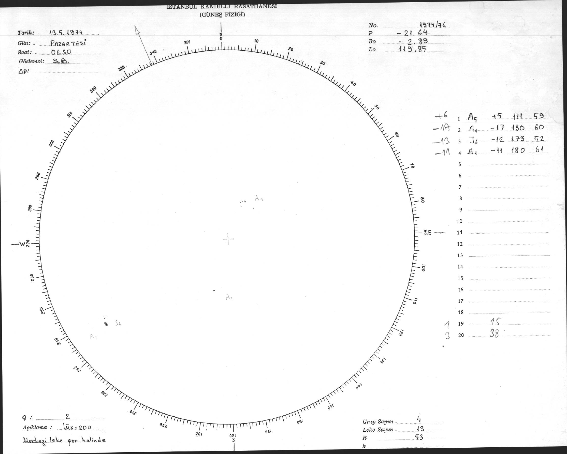 Güneş Lekesi Çizimi - 13.05.1974