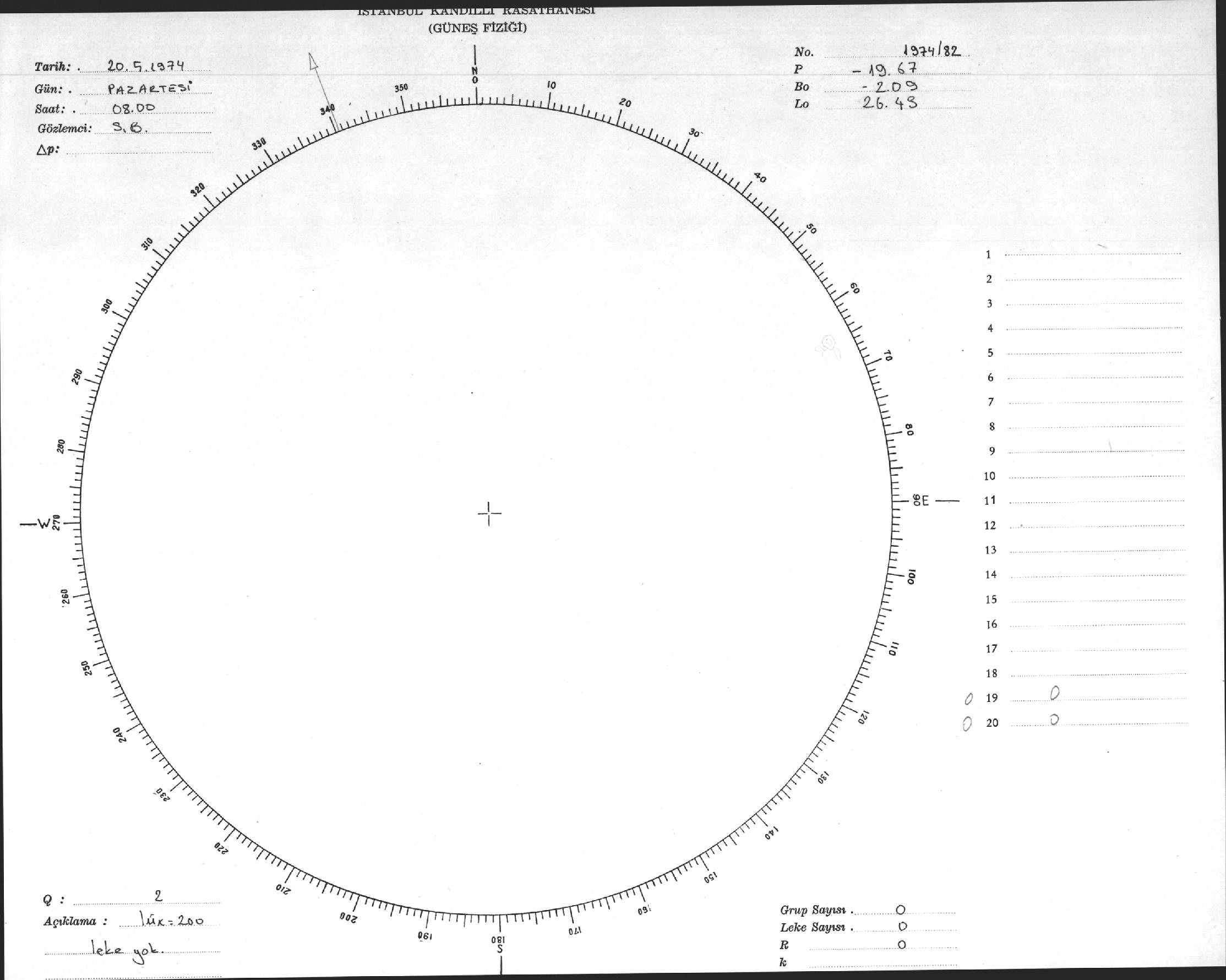 Güneş Lekesi Çizimi - 20.05.1974
