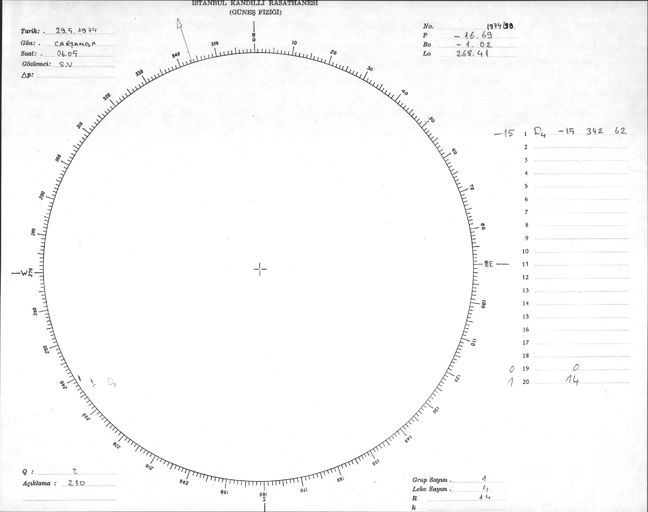 Güneş Lekesi Çizimi - 29.05.1974
