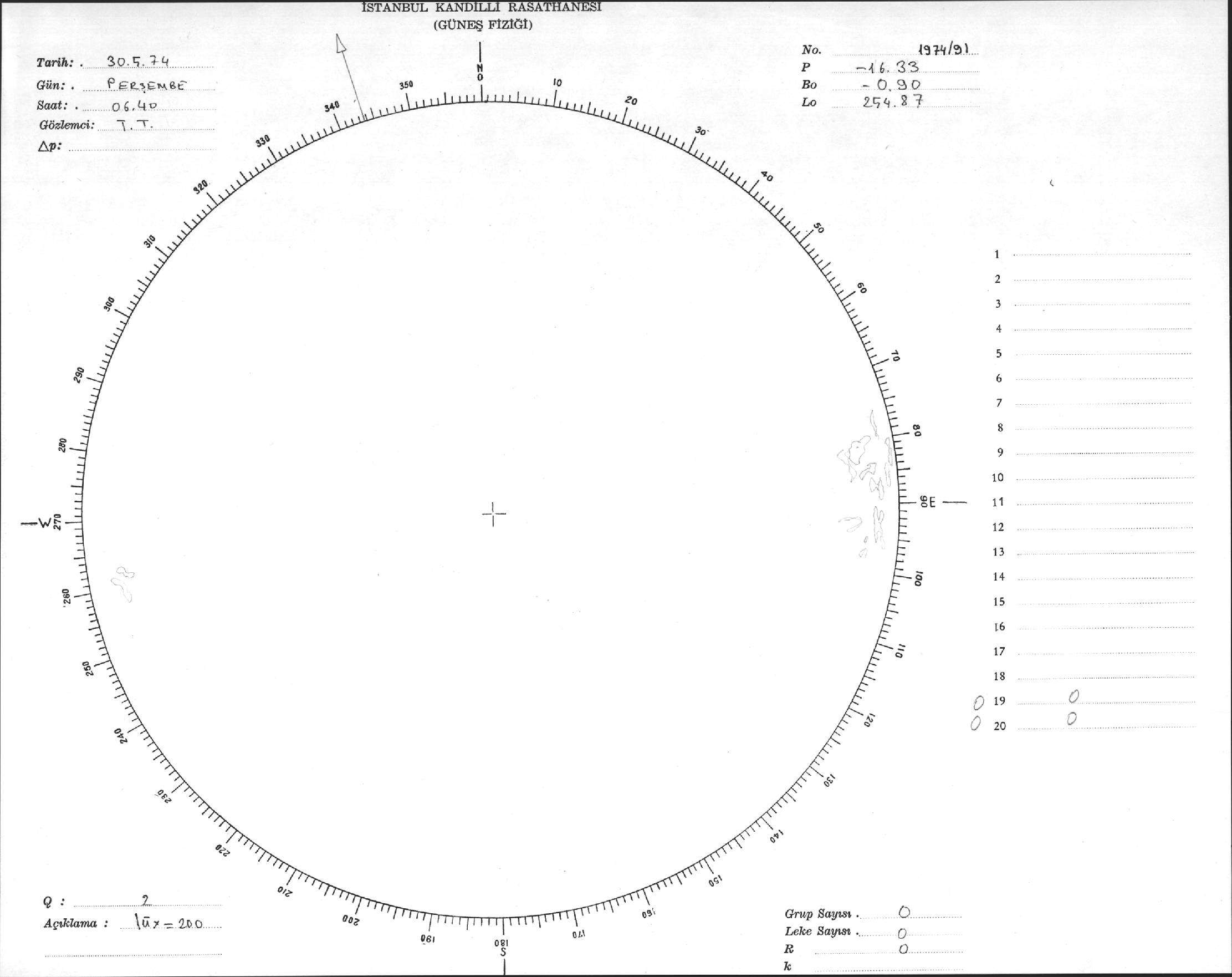 Güneş Lekesi Çizimi - 30.05.1974