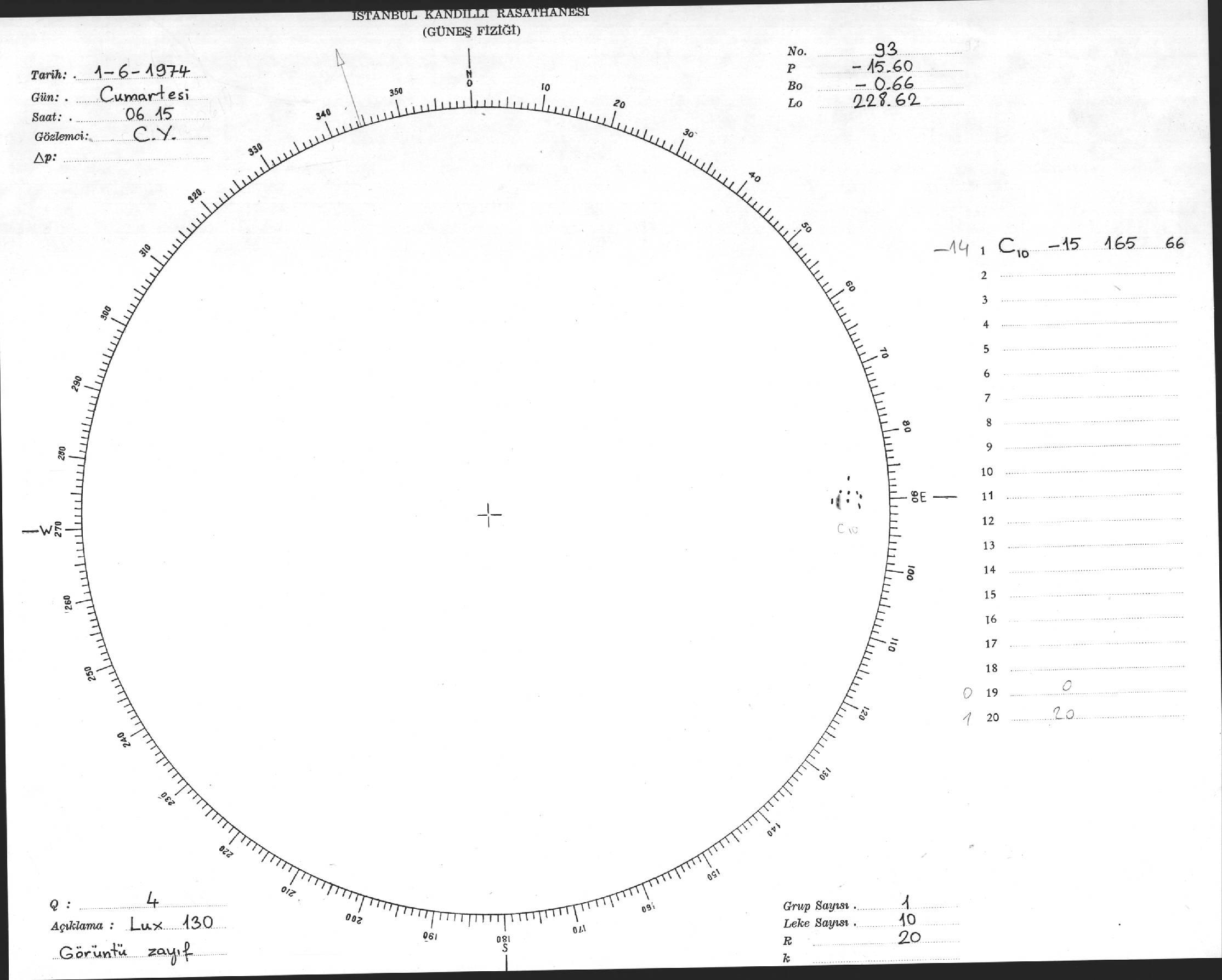 Güneş Lekesi Çizimi - 01.06.1974