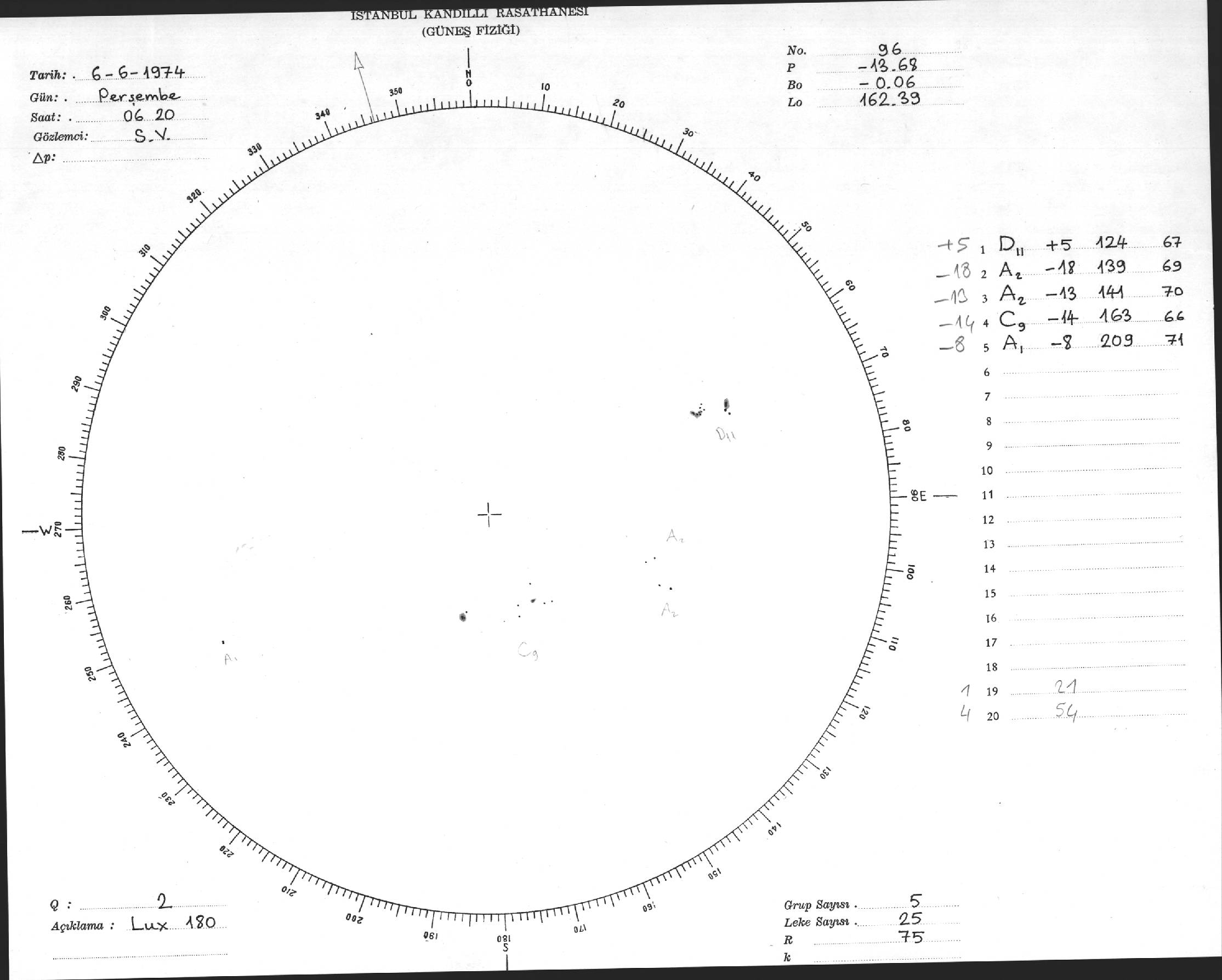 Güneş Lekesi Çizimi - 06.06.1974