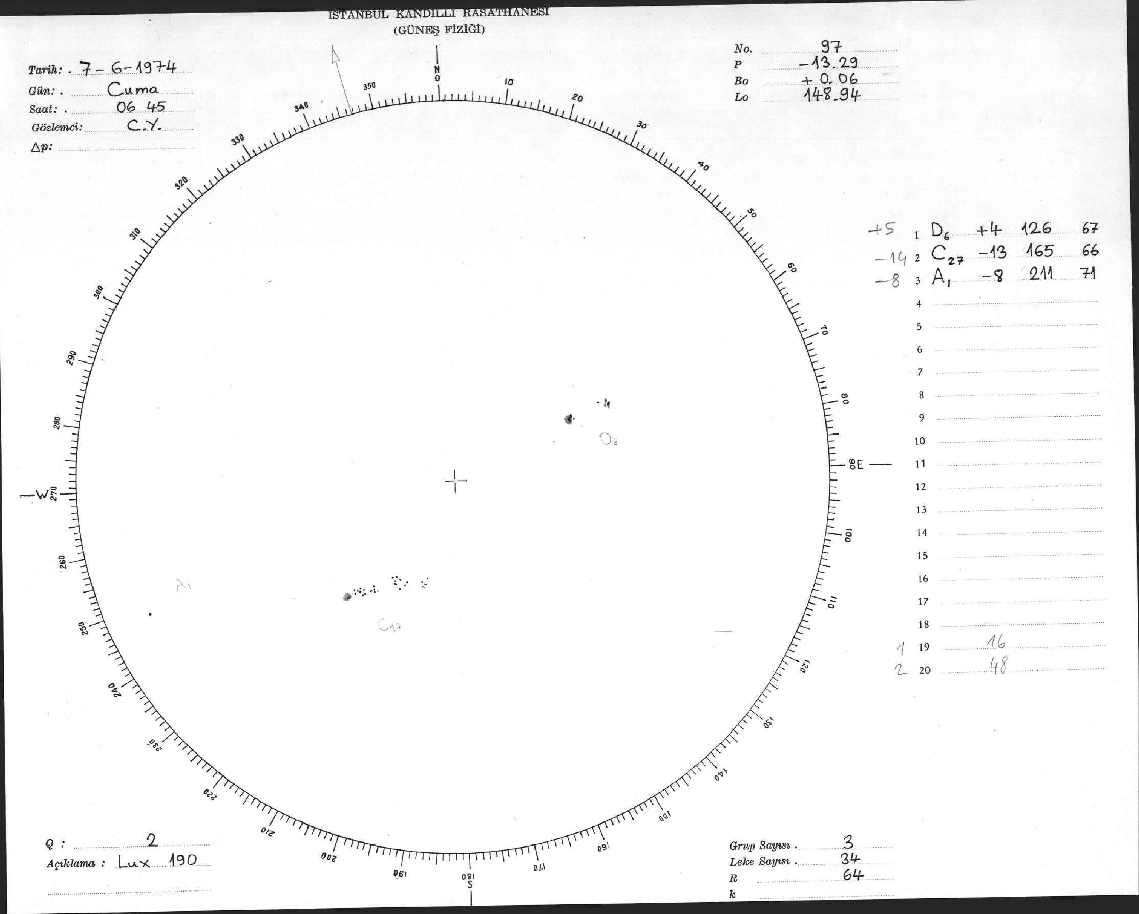 Güneş Lekesi Çizimi - 07.06.1974