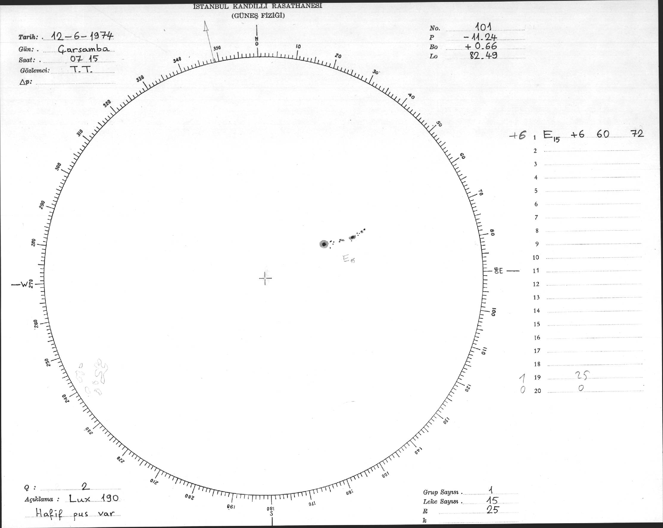 Güneş Lekesi Çizimi - 12.06.1974
