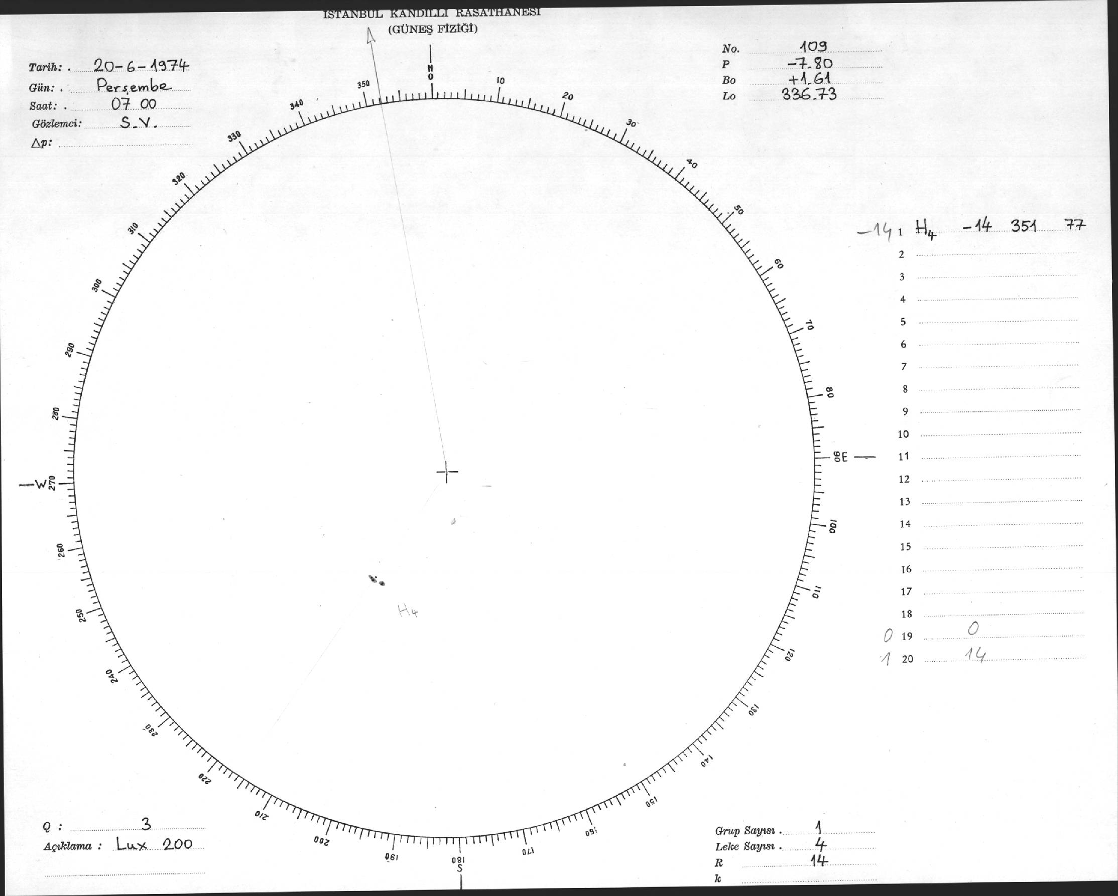 Güneş Lekesi Çizimi - 20.06.1974