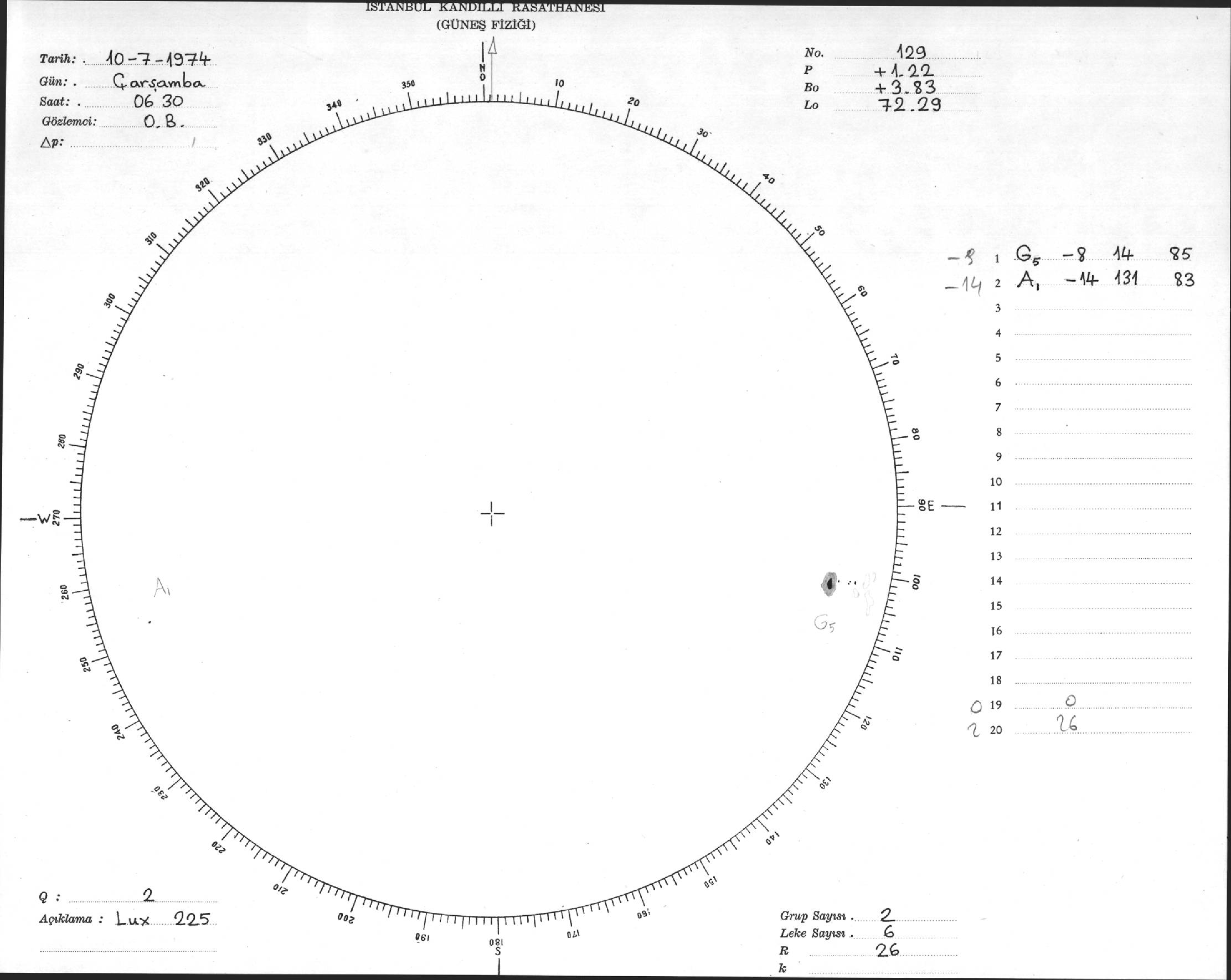 Güneş Lekesi Çizimi - 10.07.1974