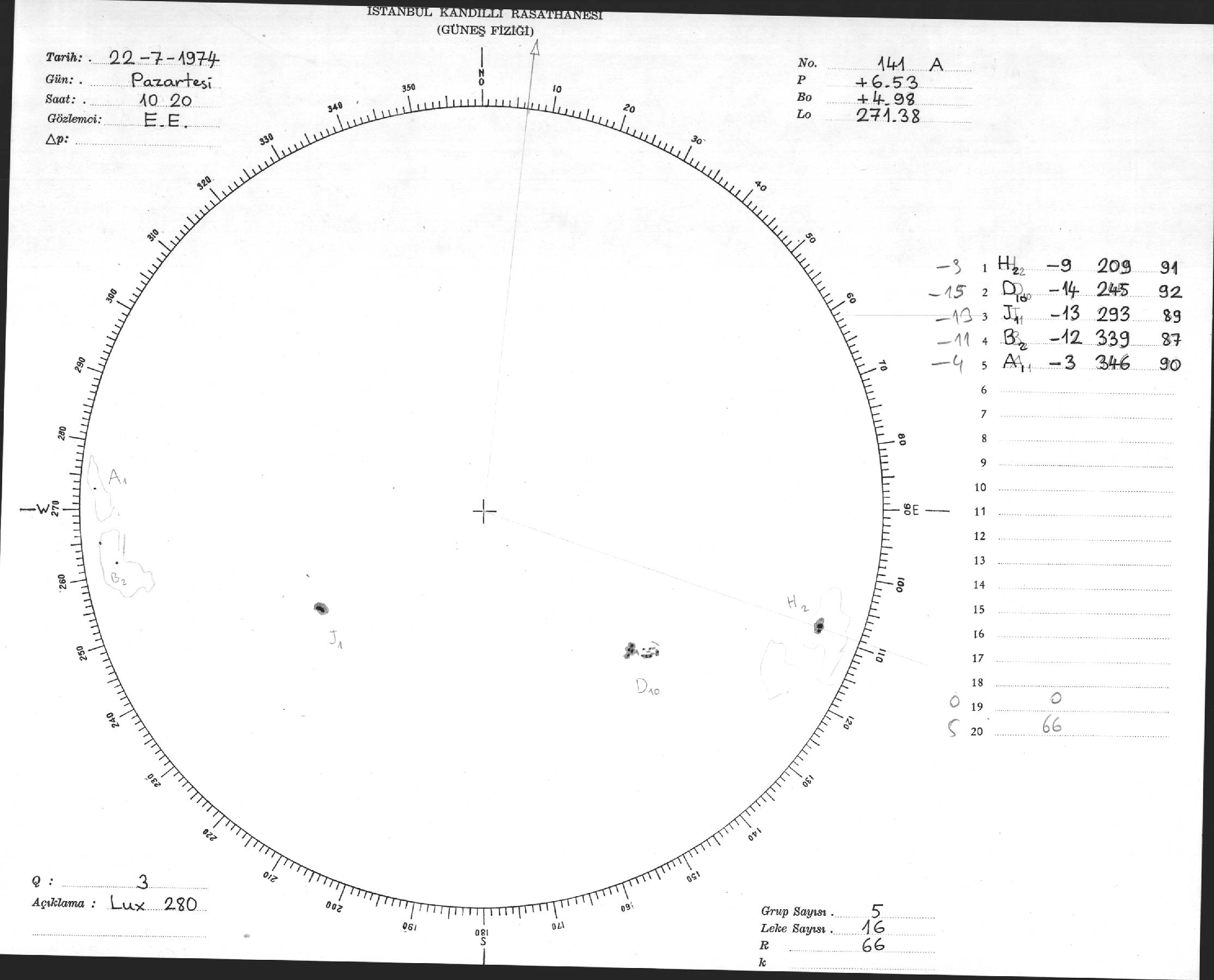 Güneş Lekesi Çizimi - 22.07.1974