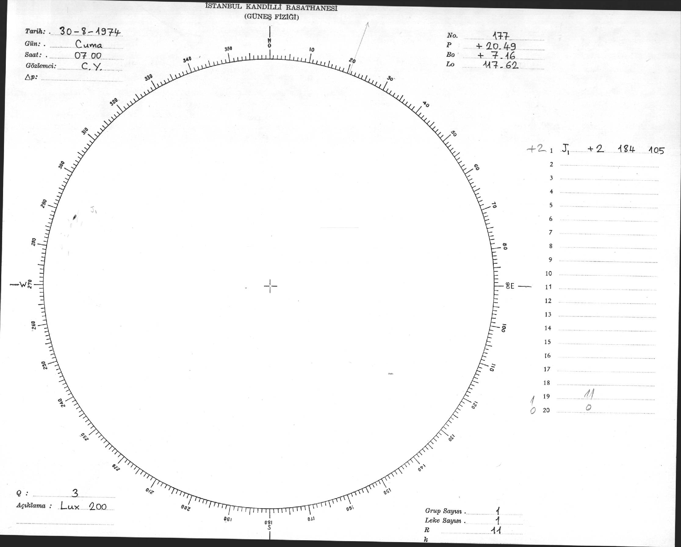 Güneş Lekesi Çizimi - 30.08.1974