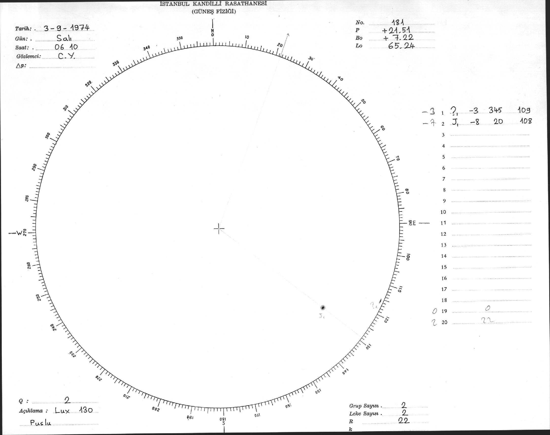 Güneş Lekesi Çizimi - 03.09.1974