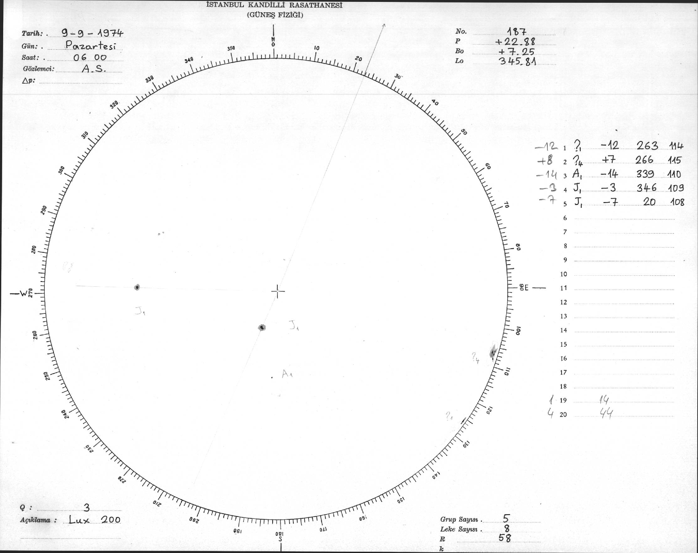 Güneş Lekesi Çizimi - 09.09.1974