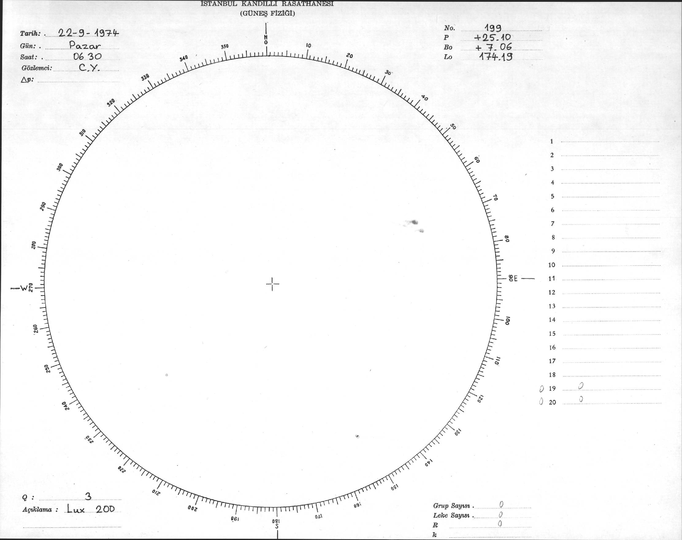 Güneş Lekesi Çizimi - 22.09.1974