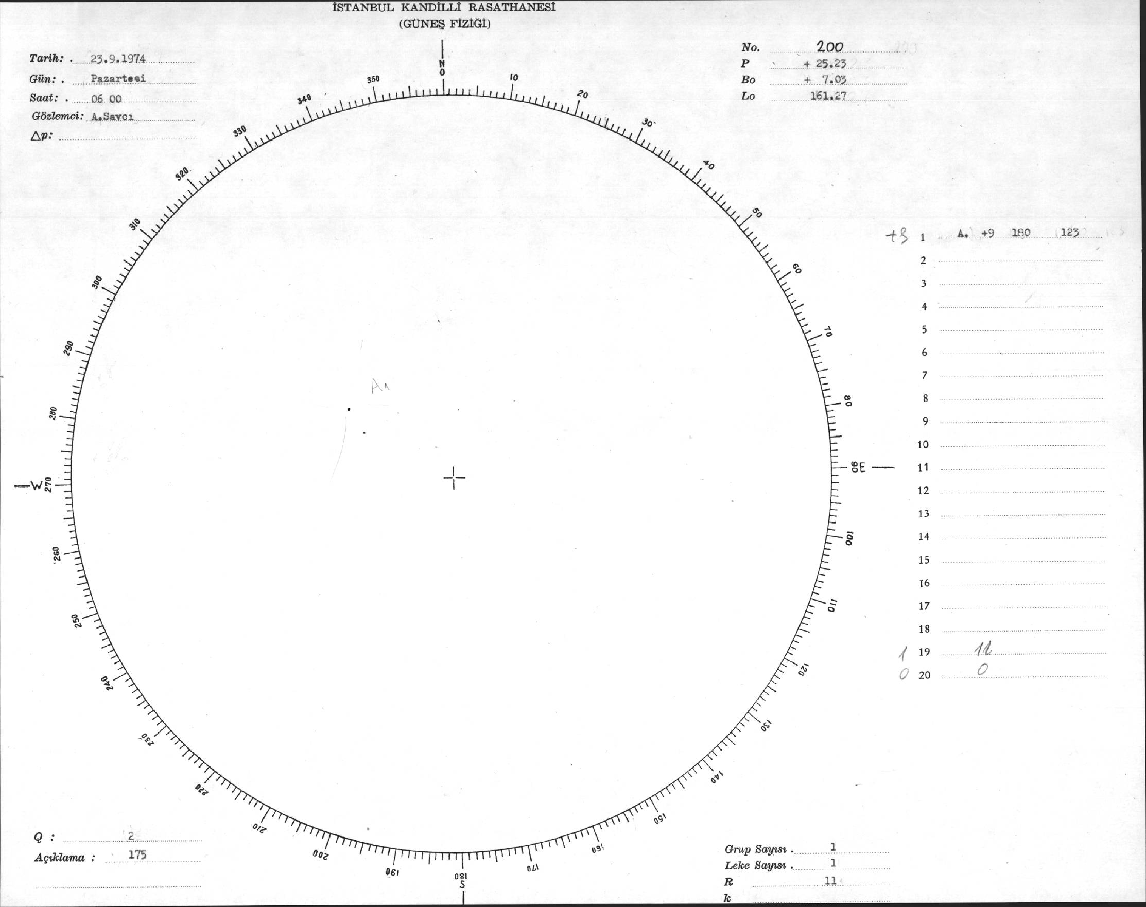 Güneş Lekesi Çizimi - 23.09.1974