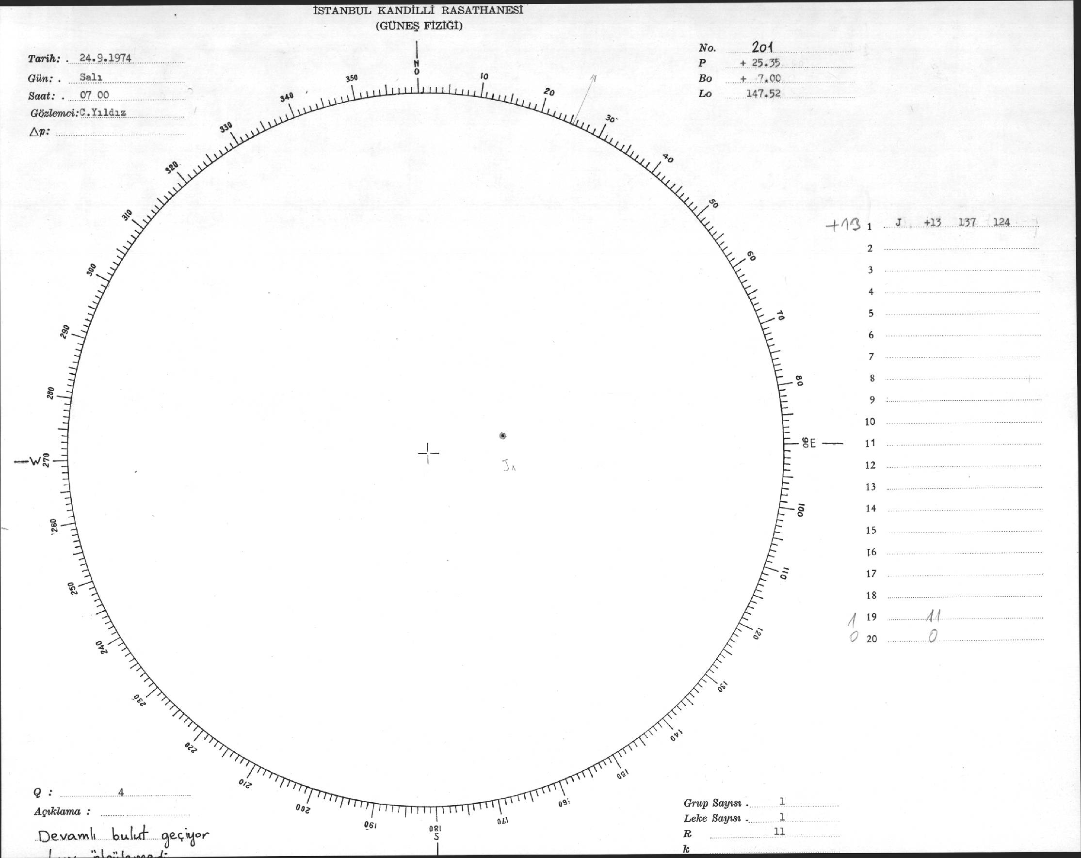 Güneş Lekesi Çizimi - 24.09.1974