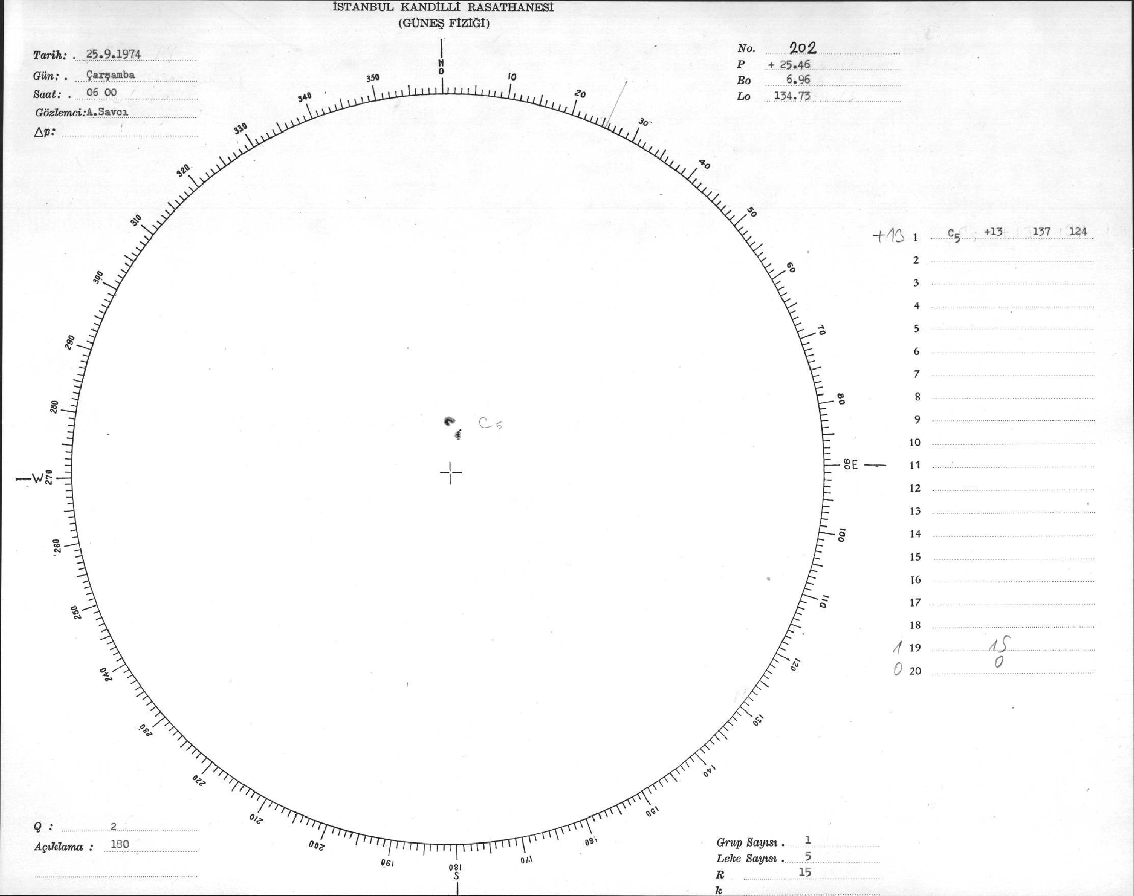 Güneş Lekesi Çizimi - 25.09.1974