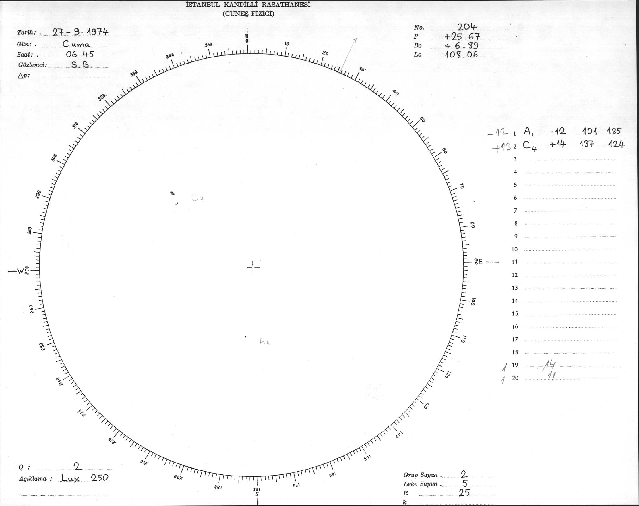 Güneş Lekesi Çizimi - 27.09.1974