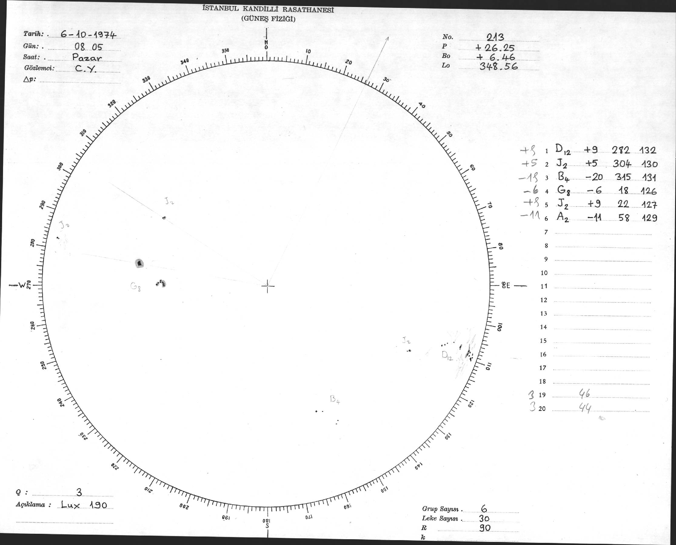 Güneş Lekesi Çizimi - 06.10.1974