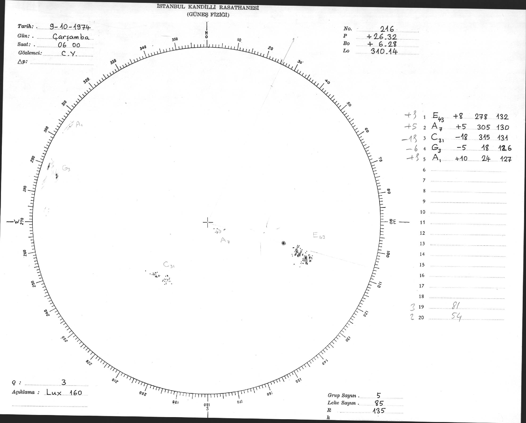 Güneş Lekesi Çizimi - 09.10.1974