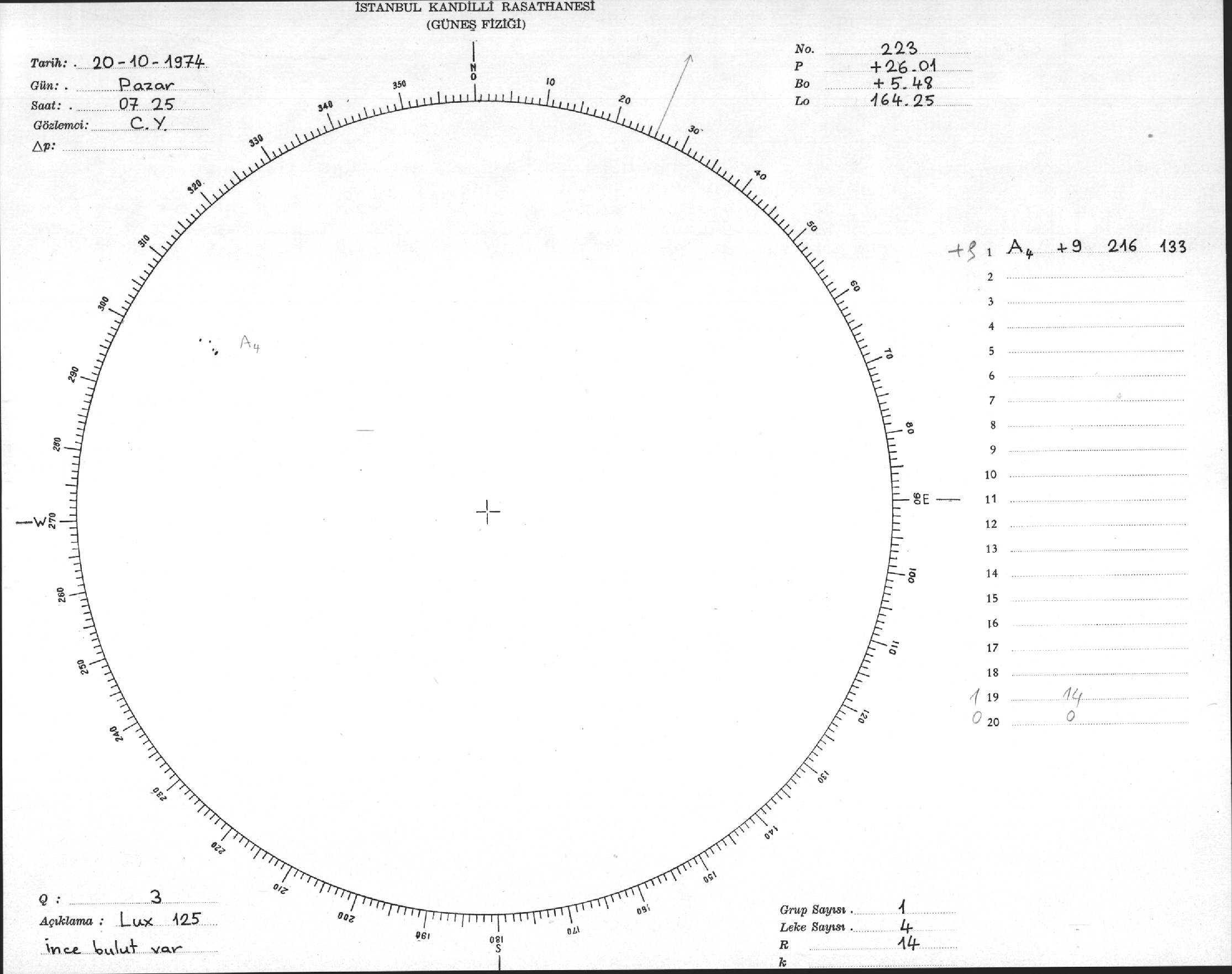 Güneş Lekesi Çizimi - 20.10.1974