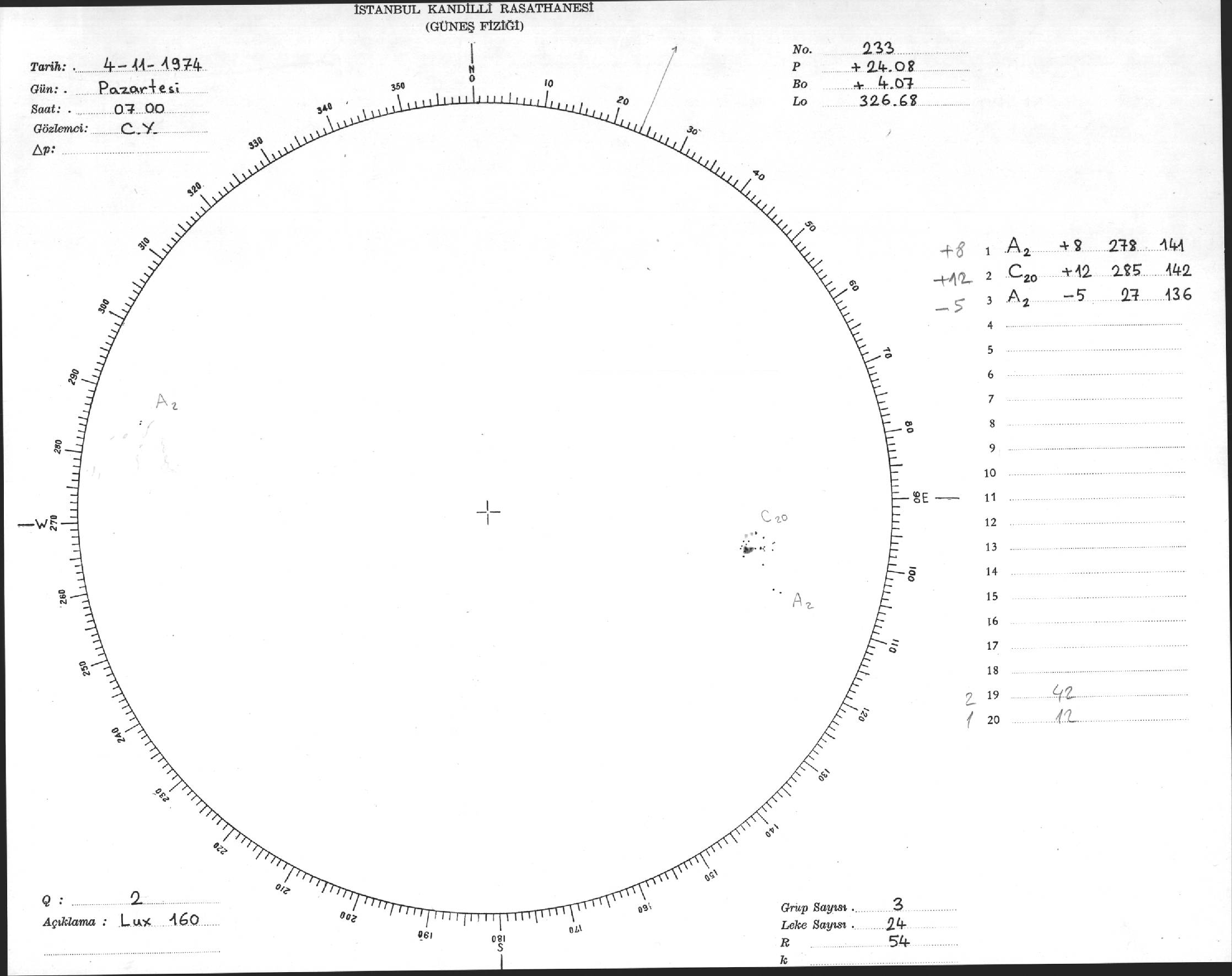 Güneş Lekesi Çizimi - 04.11.1974