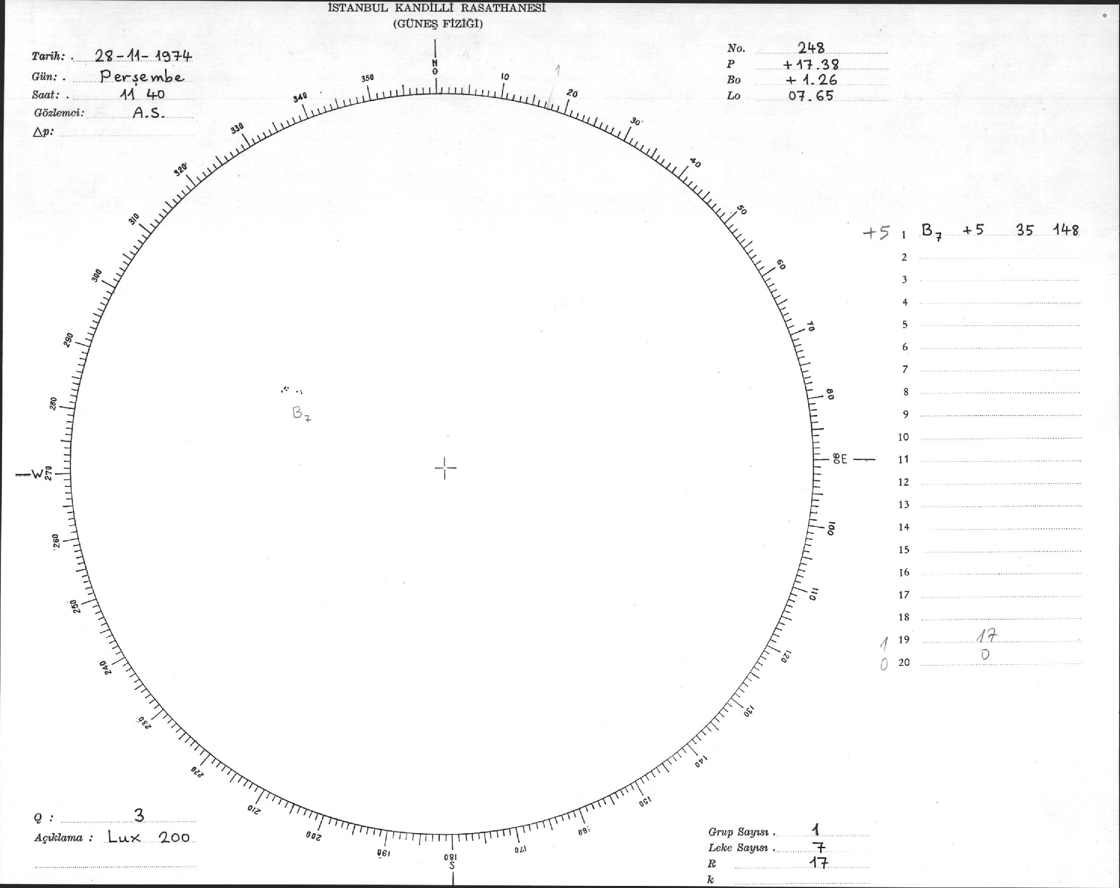 Güneş Lekesi Çizimi - 28.11.1974