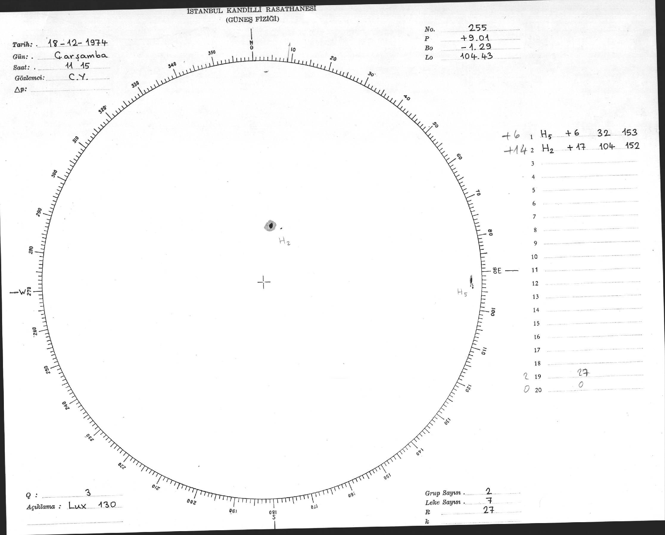 Güneş Lekesi Çizimi - 18.12.1974