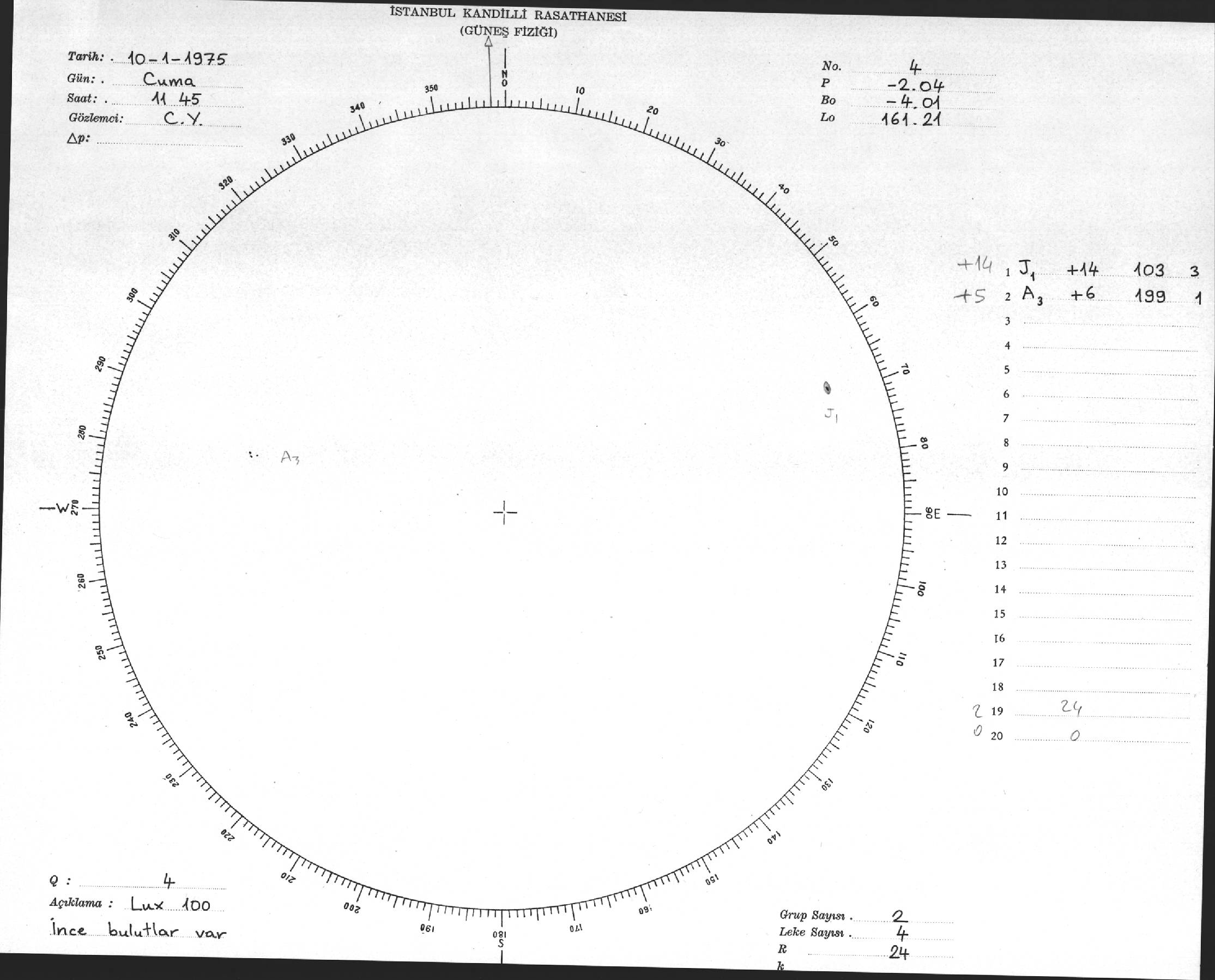 Güneş Lekesi Çizimi - 10.01.1975