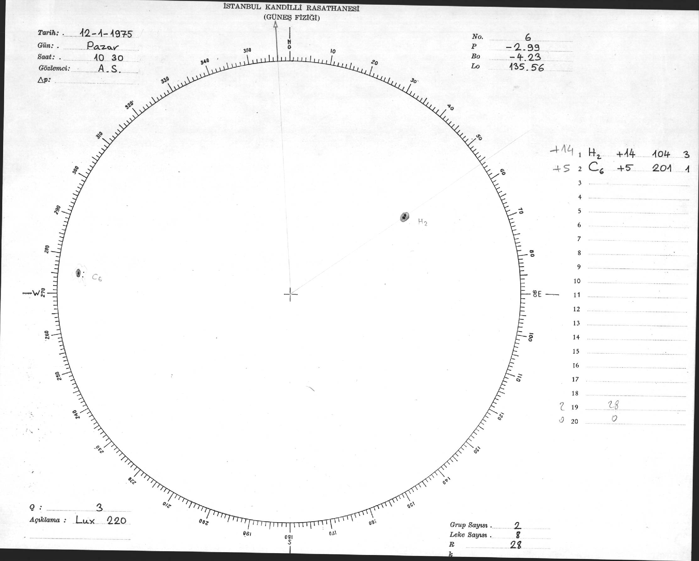 Güneş Lekesi Çizimi - 12.01.1975
