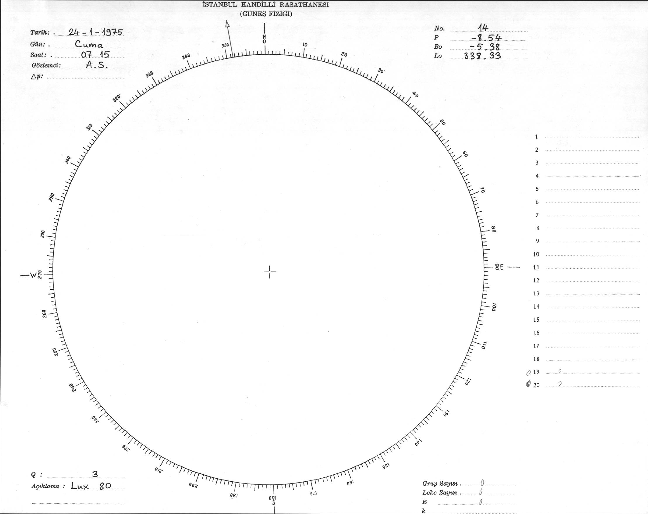 Güneş Lekesi Çizimi - 24.01.1975