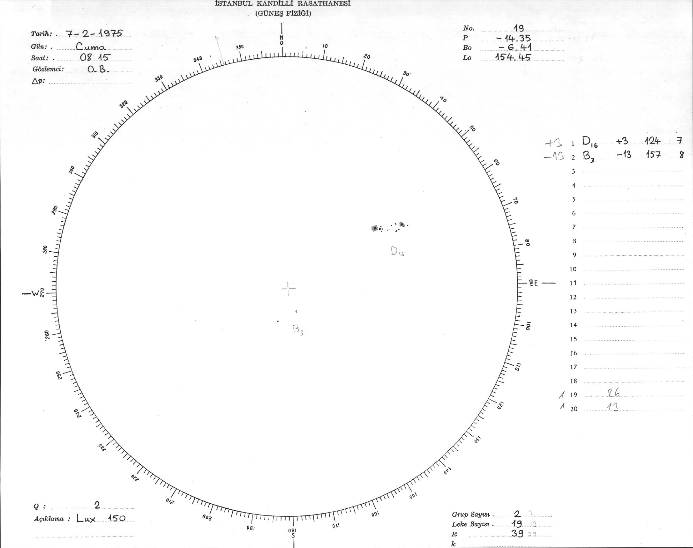 Güneş Lekesi Çizimi - 07.02.1975