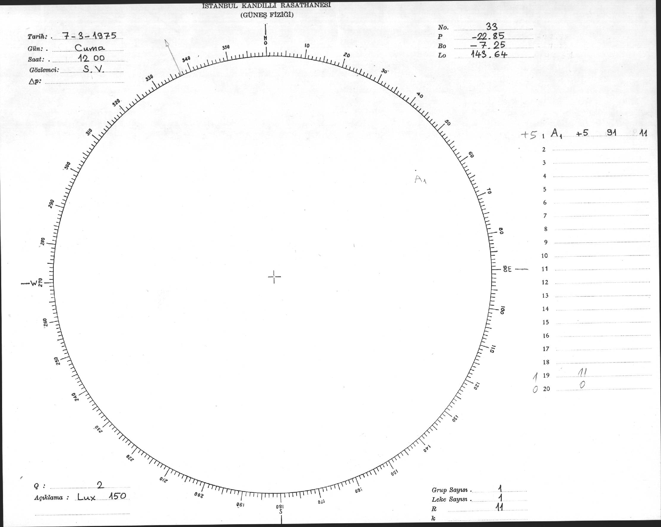 Güneş Lekesi Çizimi - 07.03.1975