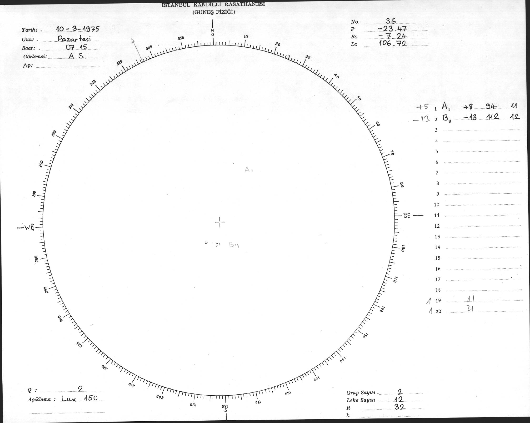 Güneş Lekesi Çizimi - 10.03.1975