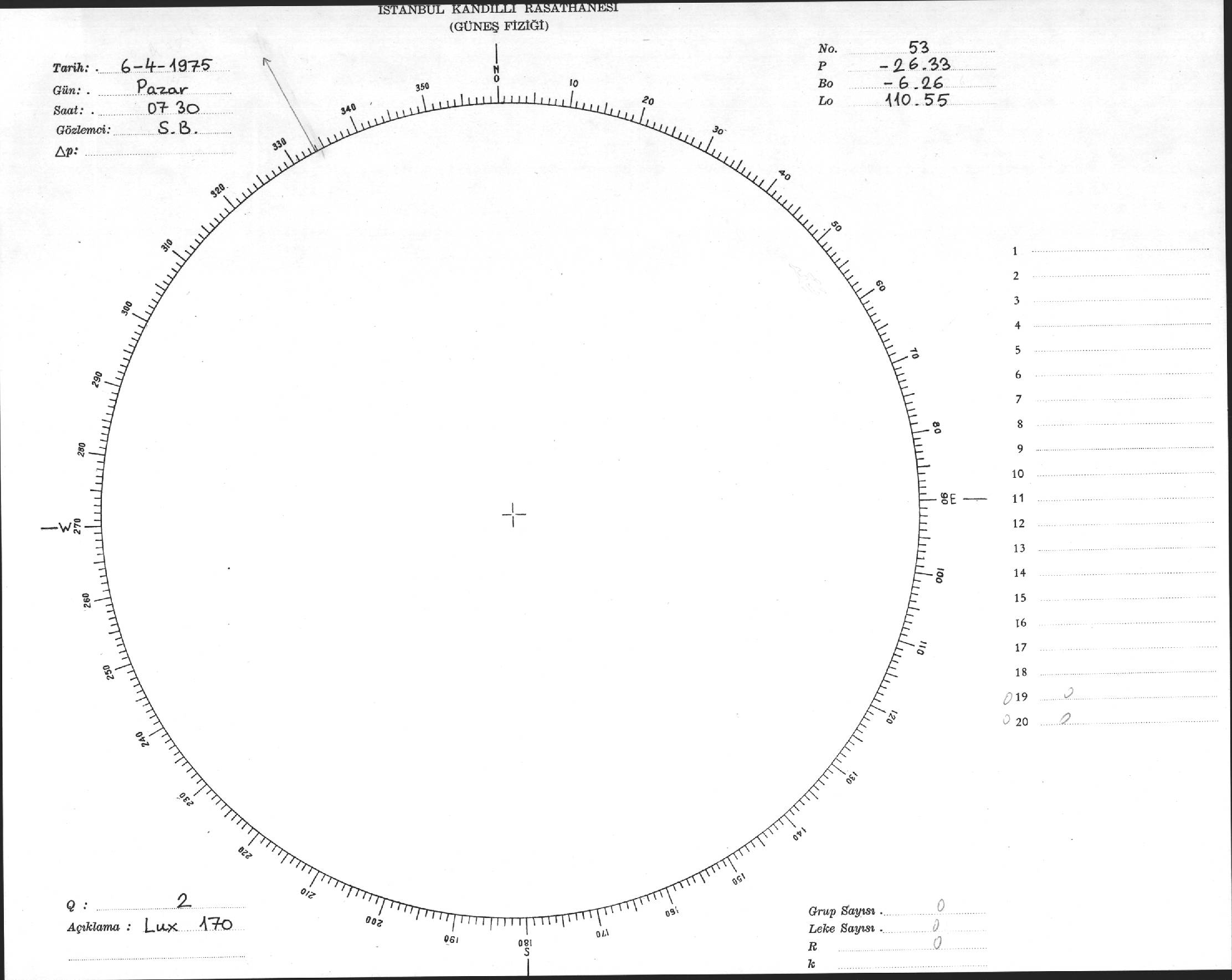 Güneş Lekesi Çizimi - 06.04.1975