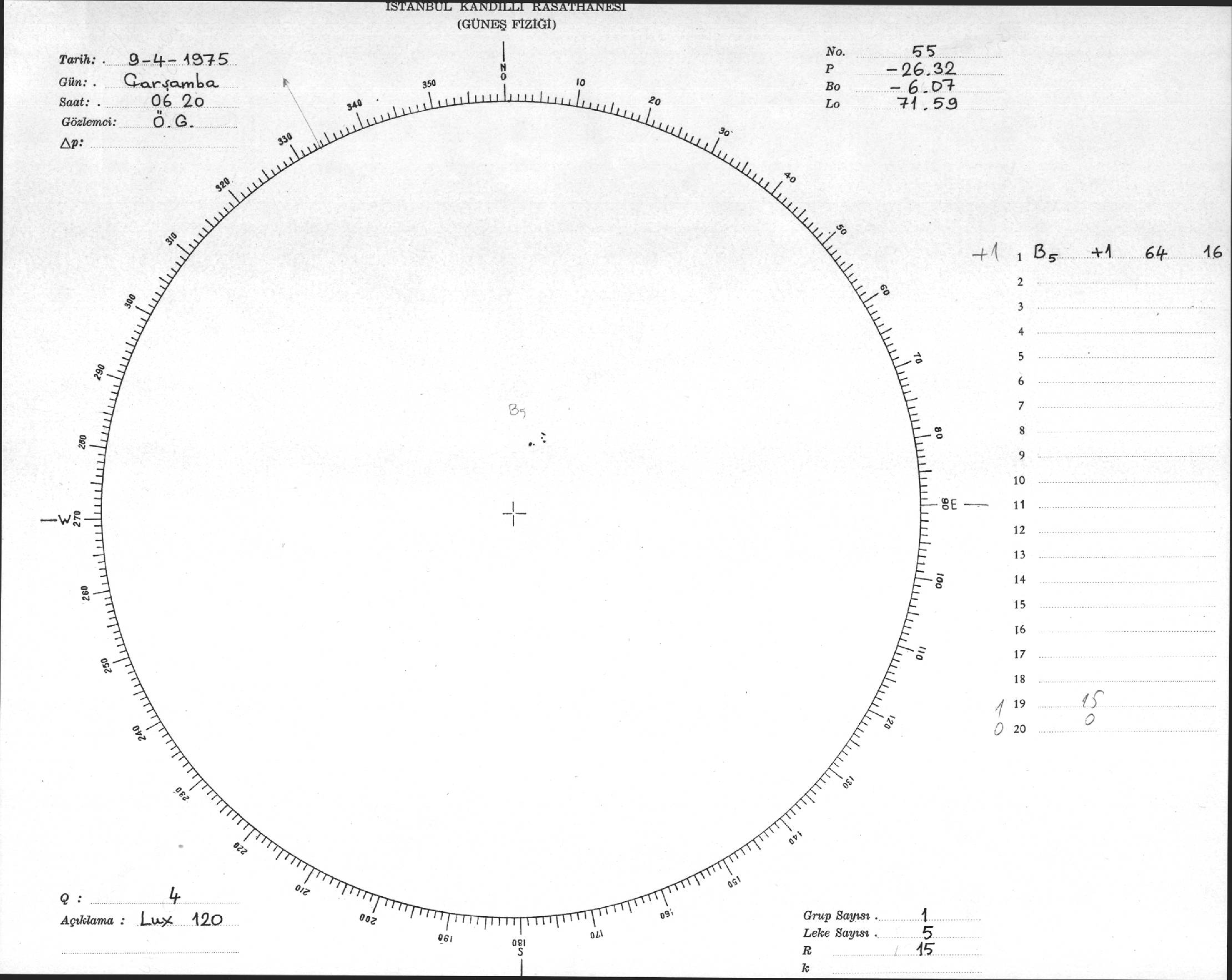 Güneş Lekesi Çizimi - 09.04.1975