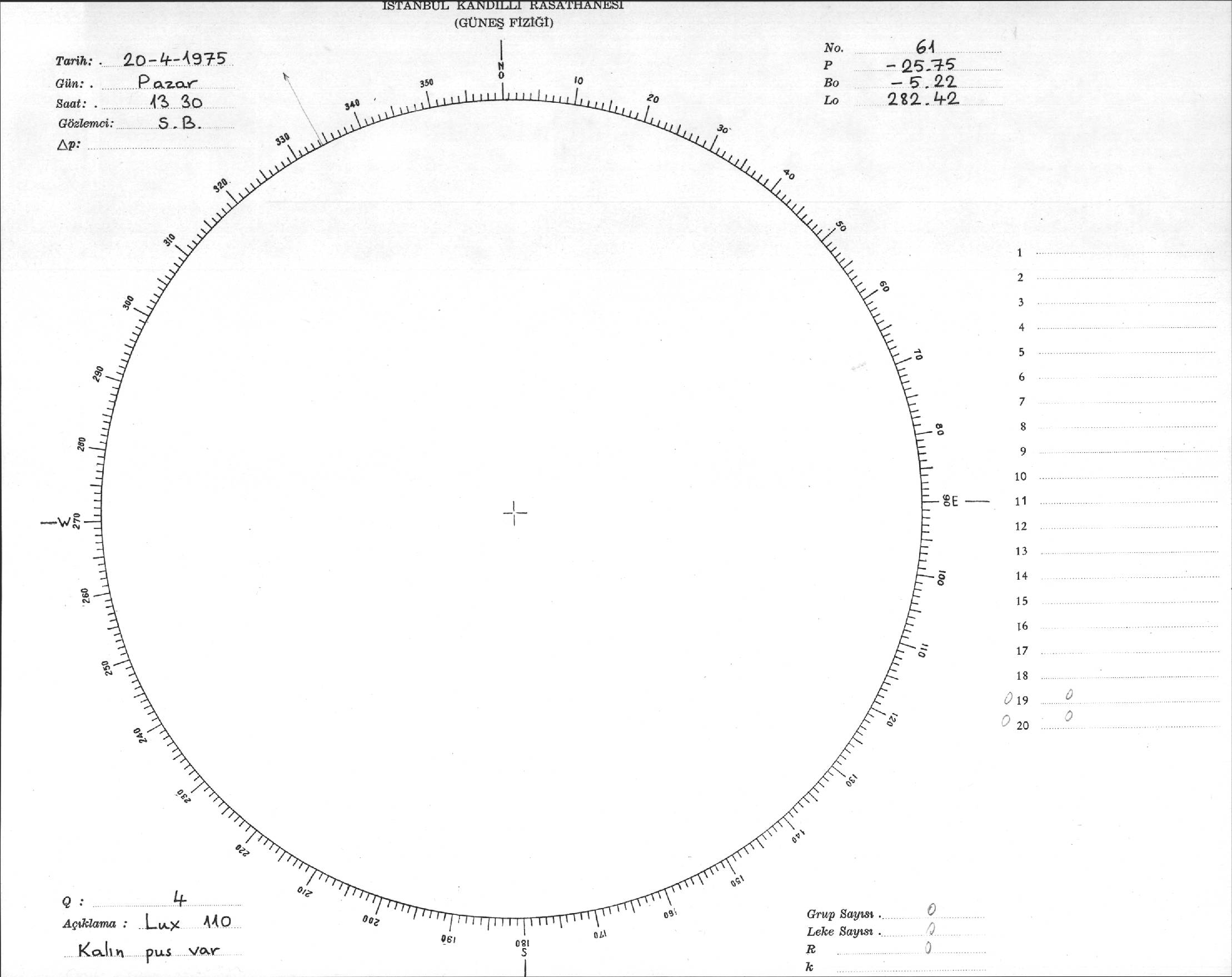 Güneş Lekesi Çizimi - 20.04.1975