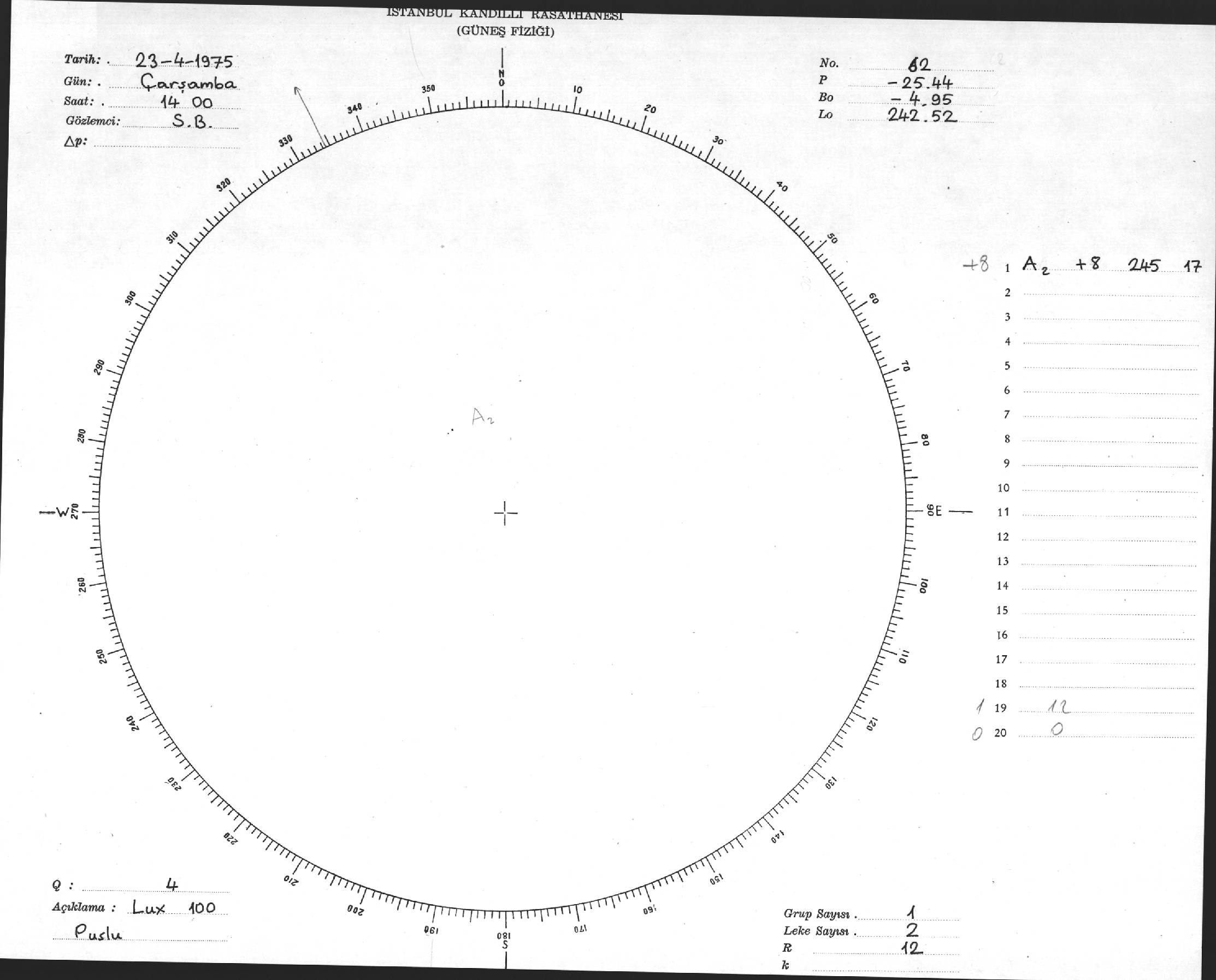 Güneş Lekesi Çizimi - 23.04.1975