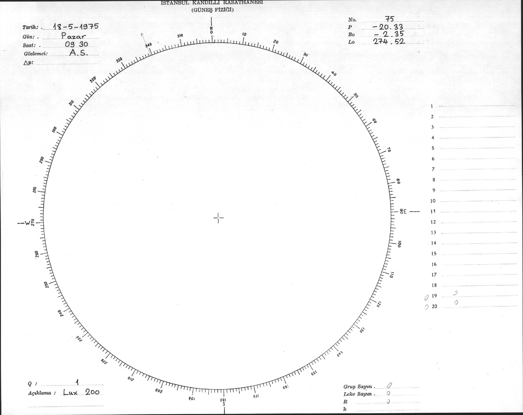 Güneş Lekesi Çizimi - 18.05.1975