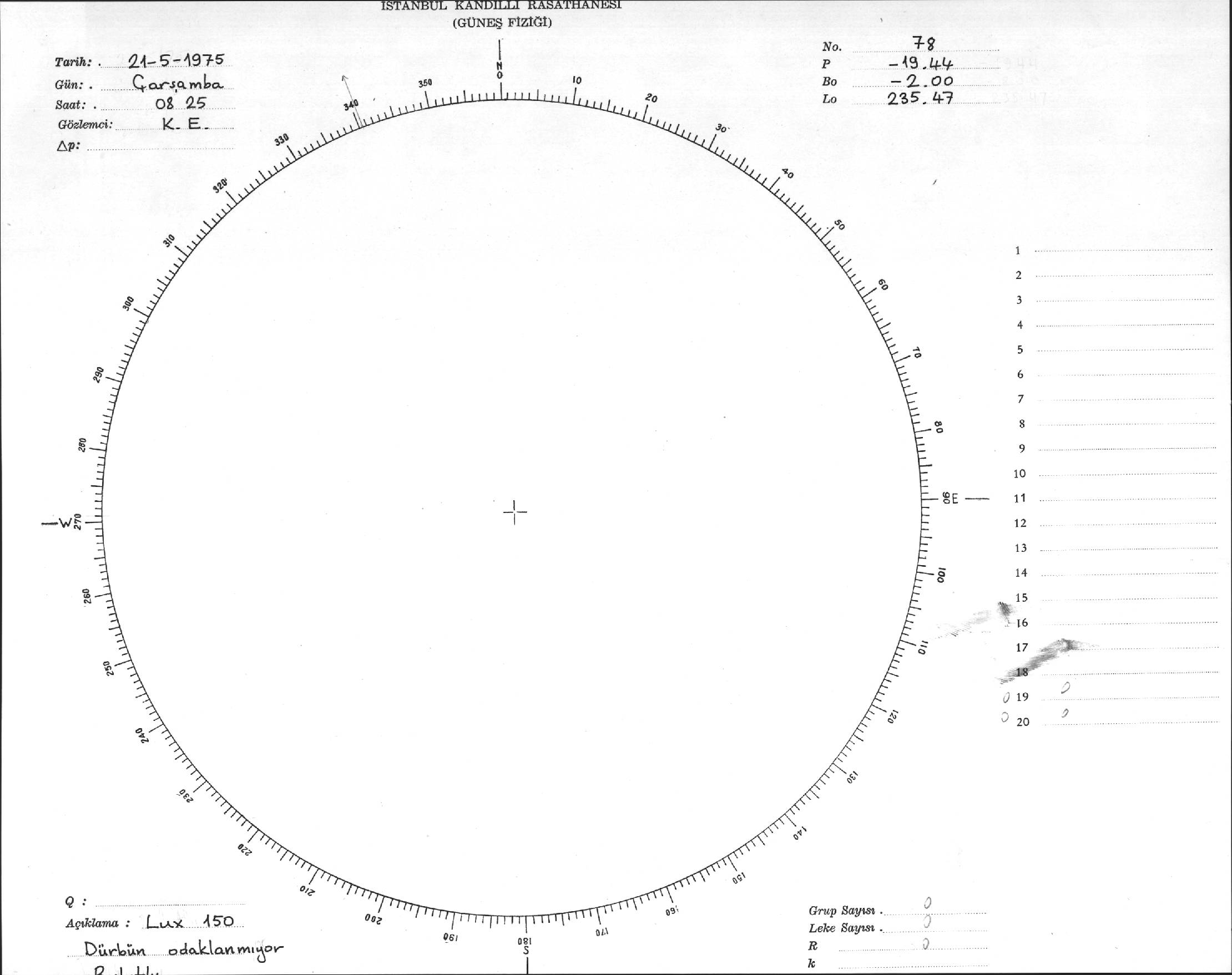 Güneş Lekesi Çizimi - 21.05.1975