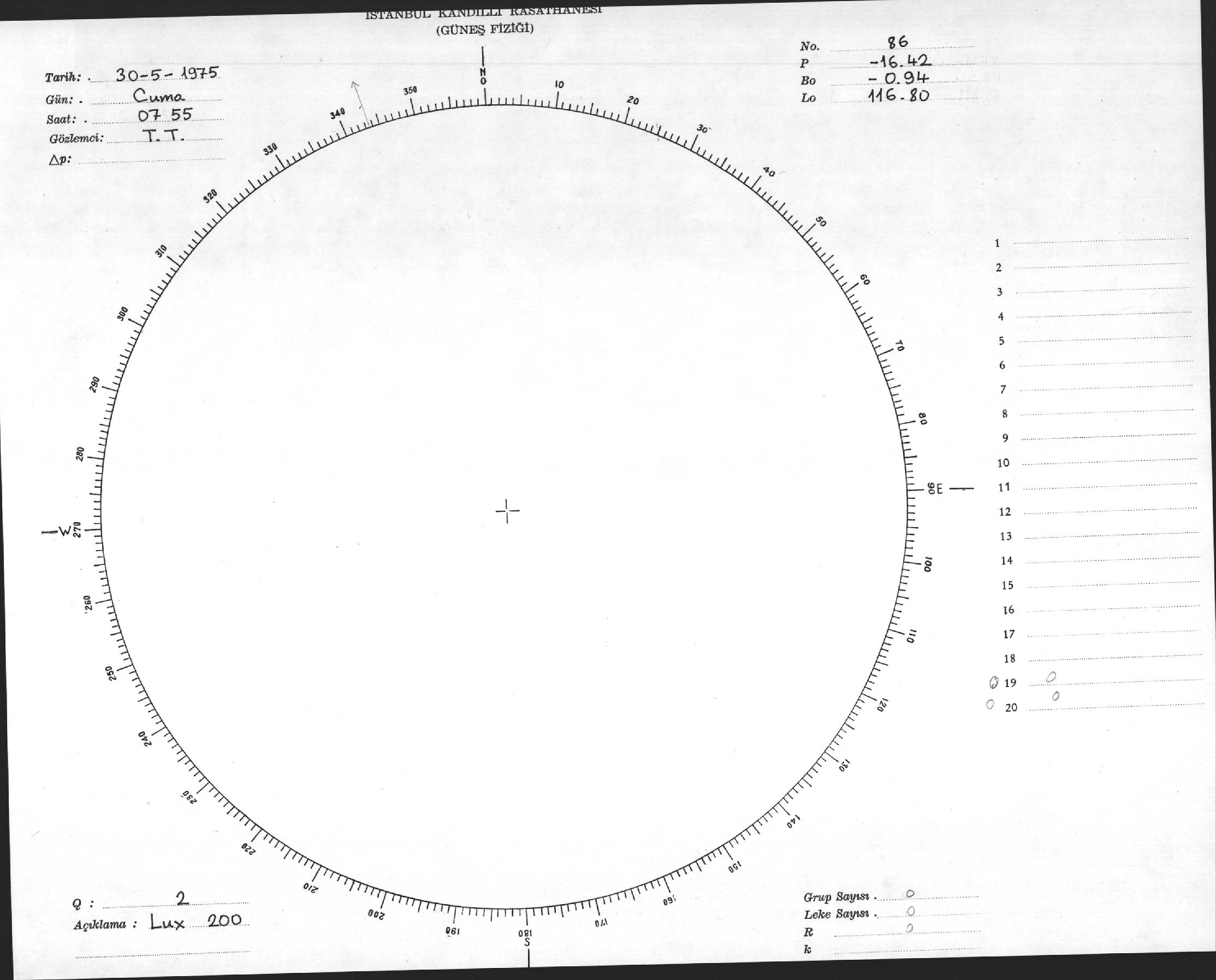 Güneş Lekesi Çizimi - 30.05.1975