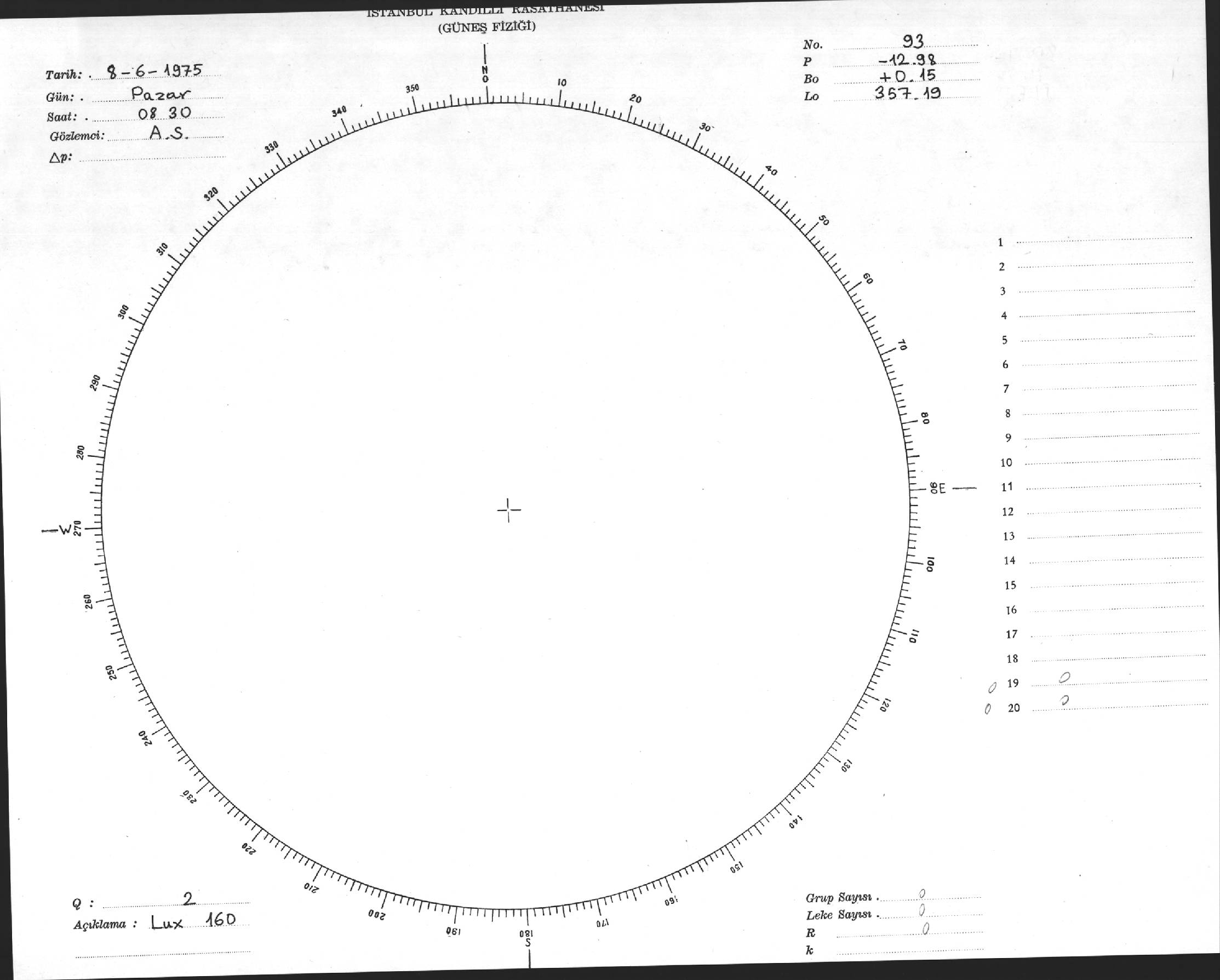 Güneş Lekesi Çizimi - 08.06.1975