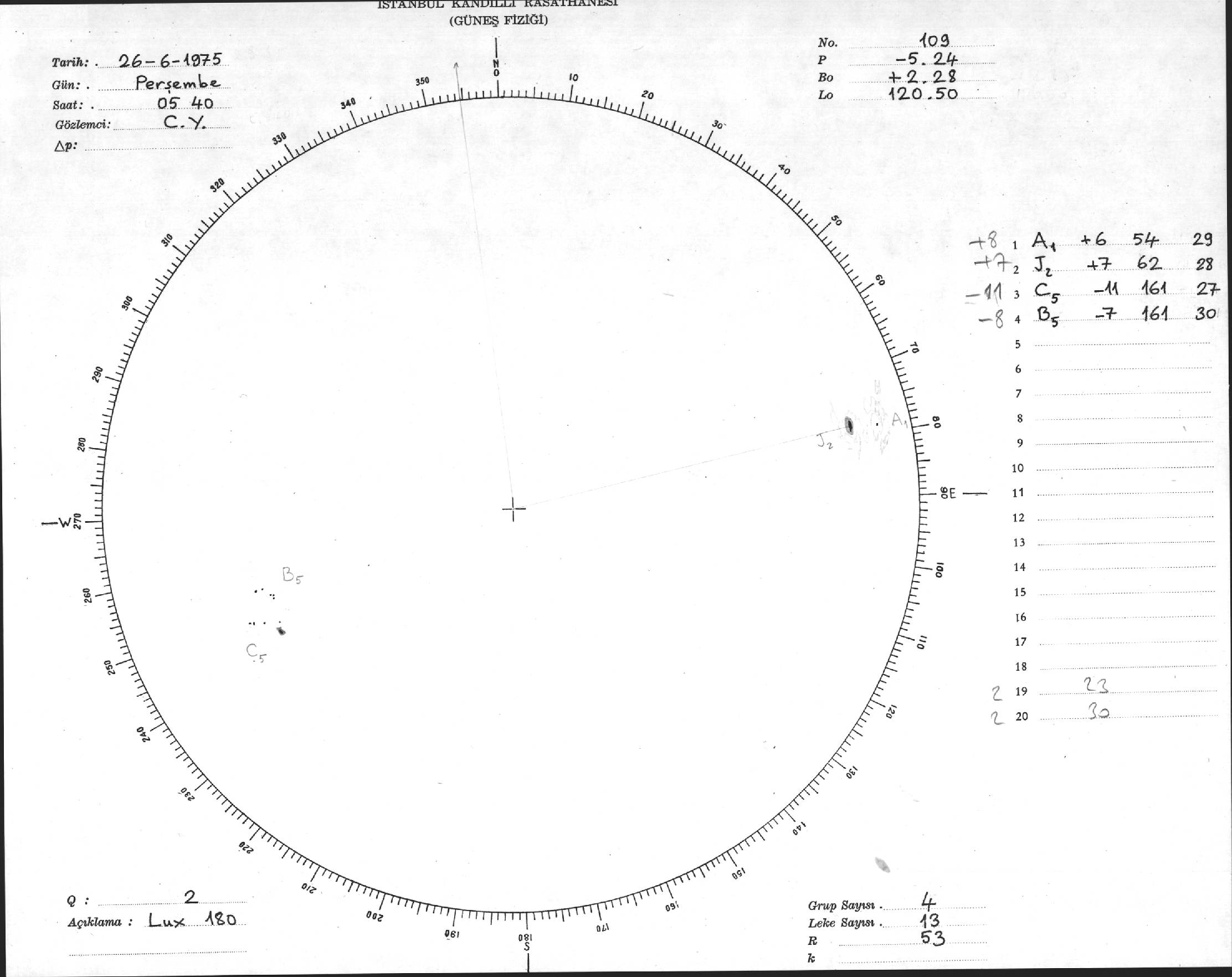 Güneş Lekesi Çizimi - 26.06.1975