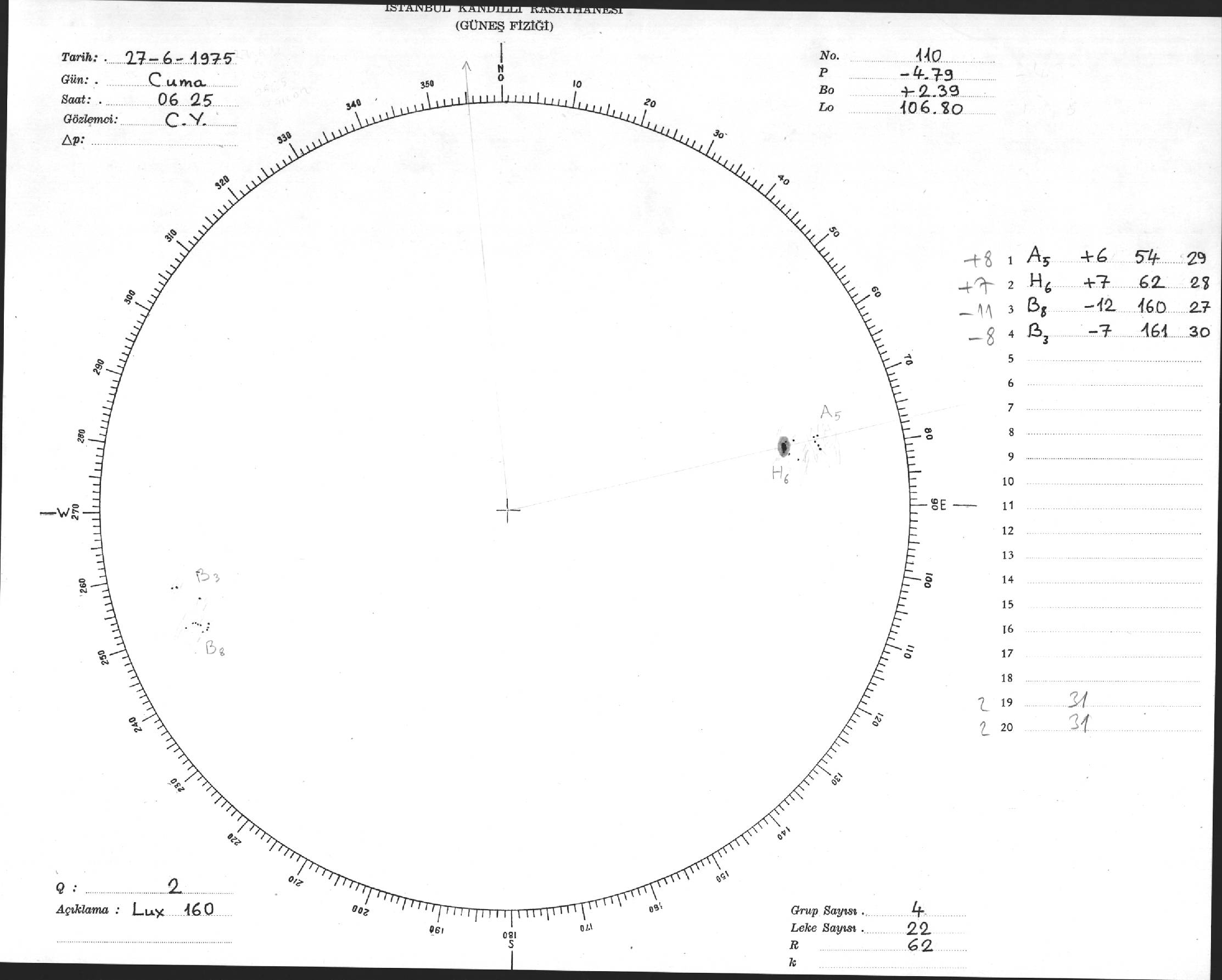 Güneş Lekesi Çizimi - 27.06.1975