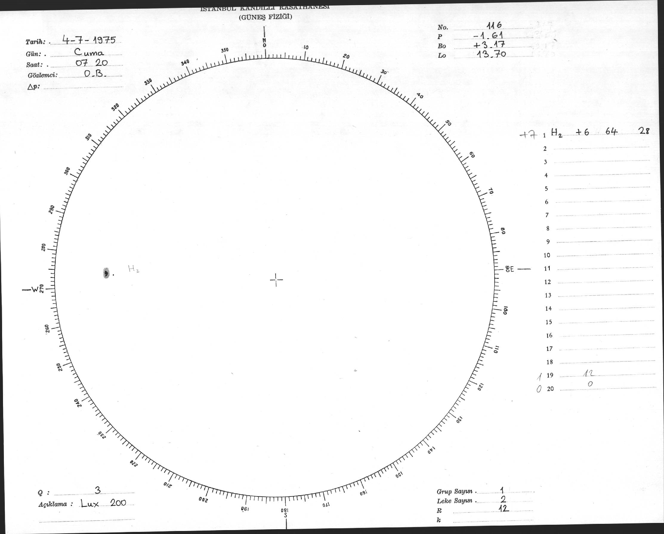 Güneş Lekesi Çizimi - 04.07.1975