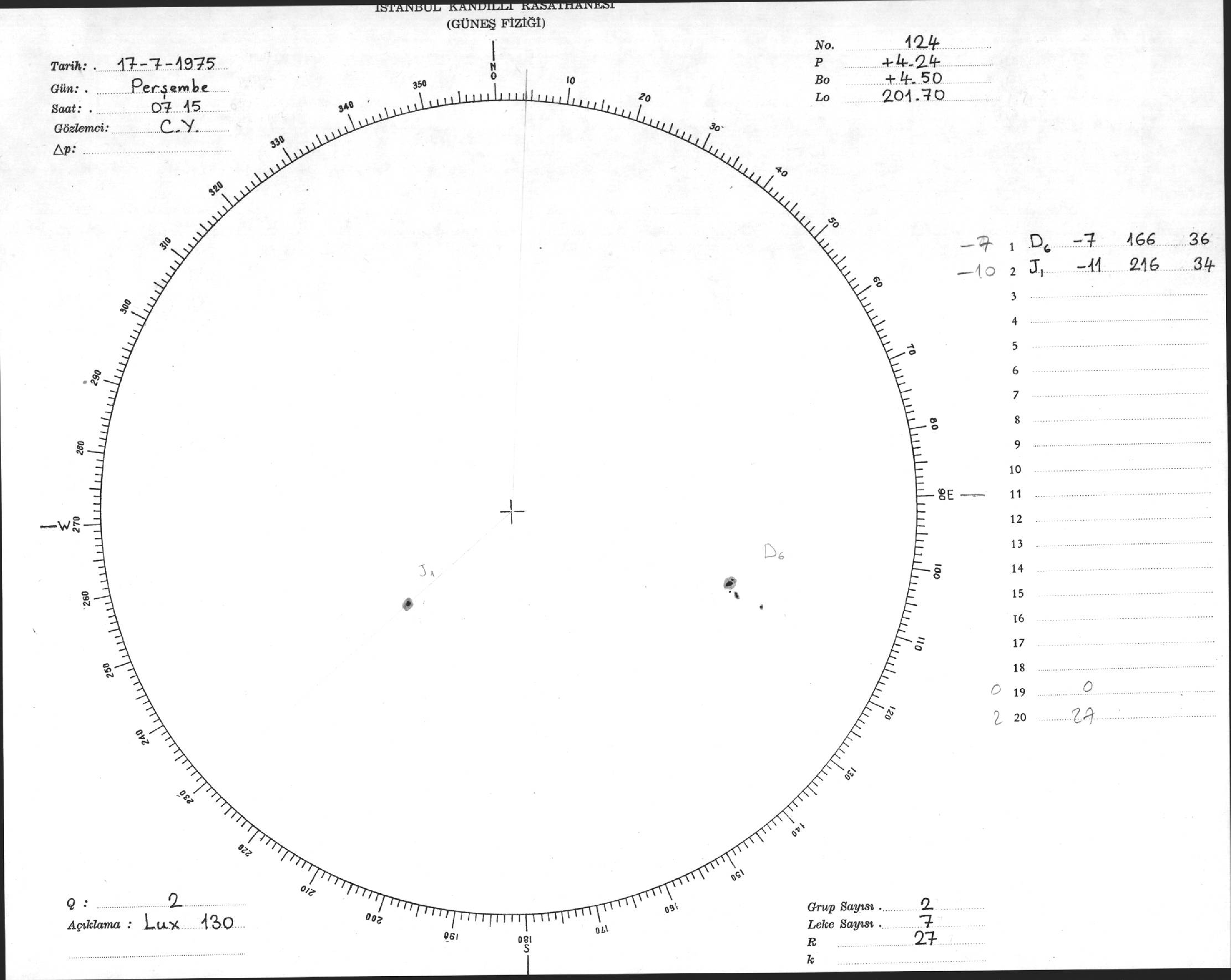 Güneş Lekesi Çizimi - 17.07.1975