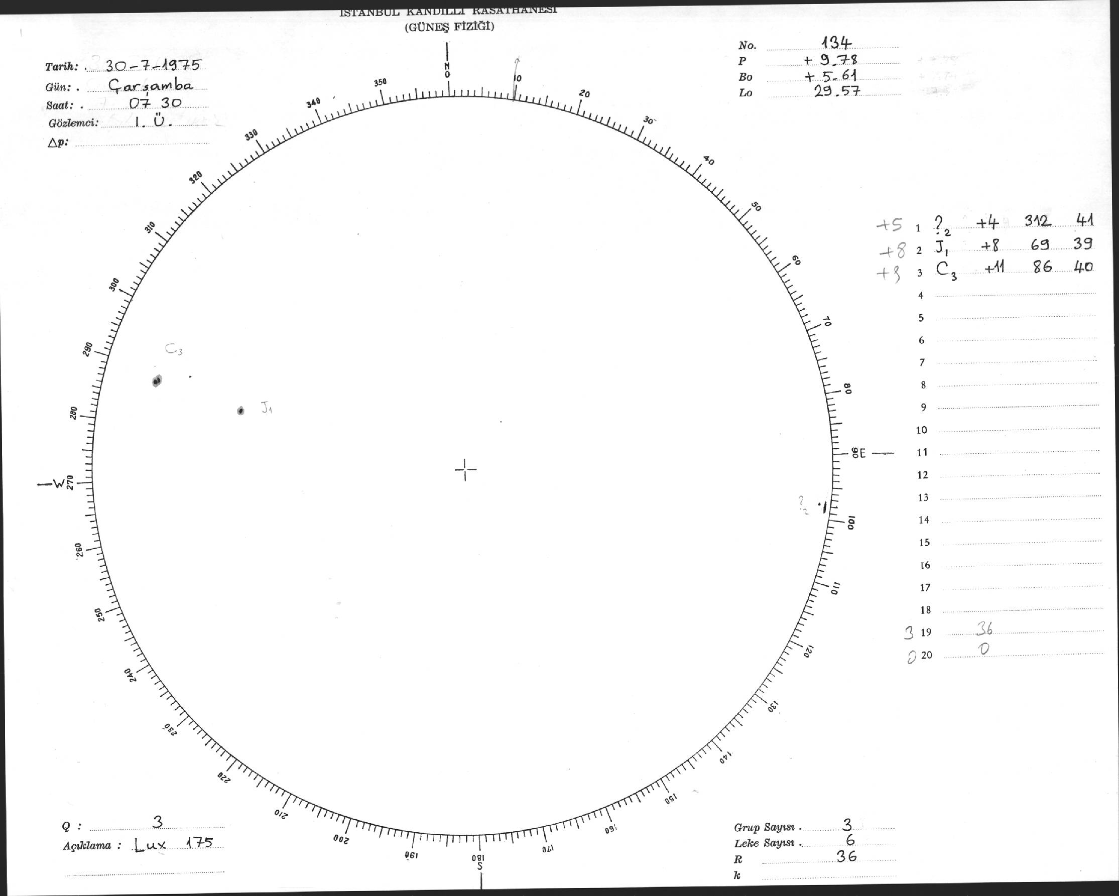 Güneş Lekesi Çizimi - 30.07.1975