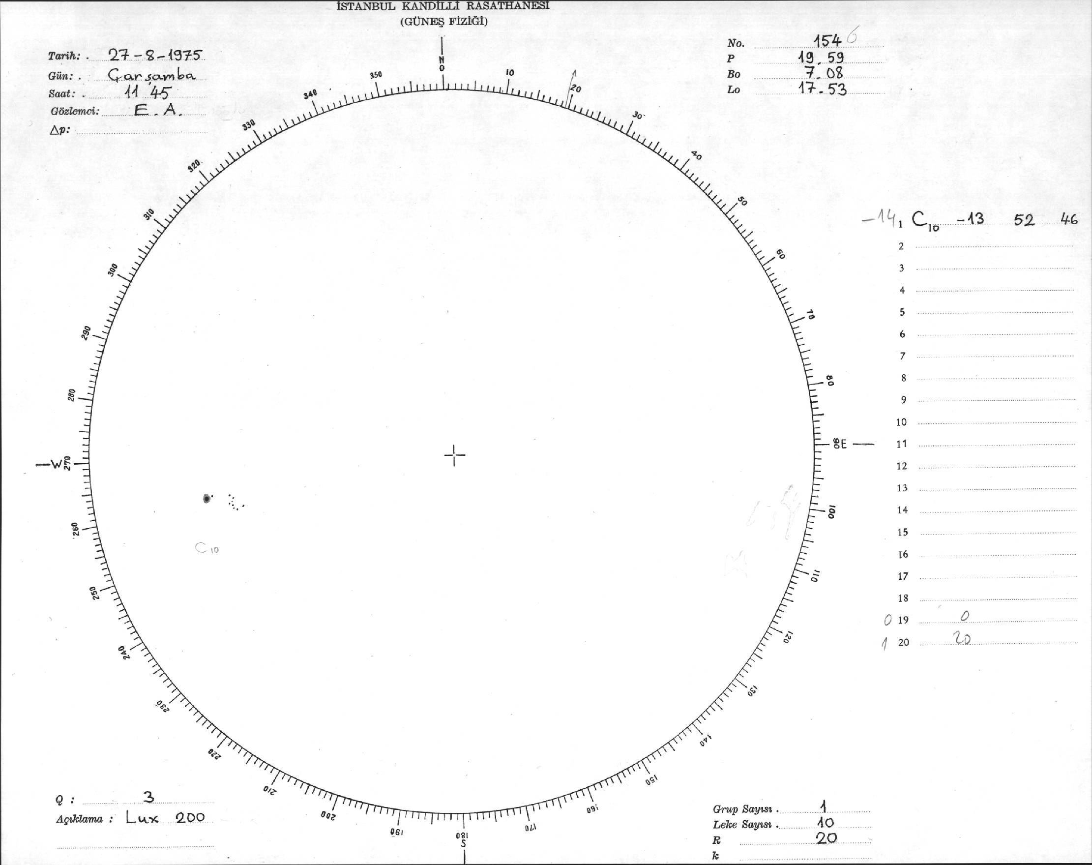 Güneş Lekesi Çizimi - 27.08.1975